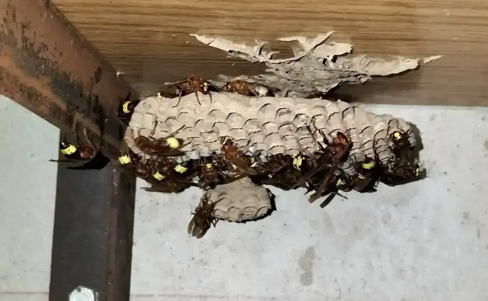Por cierto, me ha parecido que se comportan como el resto de las avispas, quiero decir que no las veo más agresivas ante los estímulos que les he provocado como luz de la linterna del móvil, mis movimientos y respiración, o ruidos.