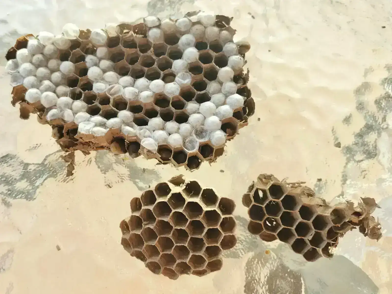 Me acabo de acordar que hubiera venido bien poner una referencia métrica al lado del nido. Por lo que se ve de larvas y pupas, el nido iba a duplicar sus habitantes en días.