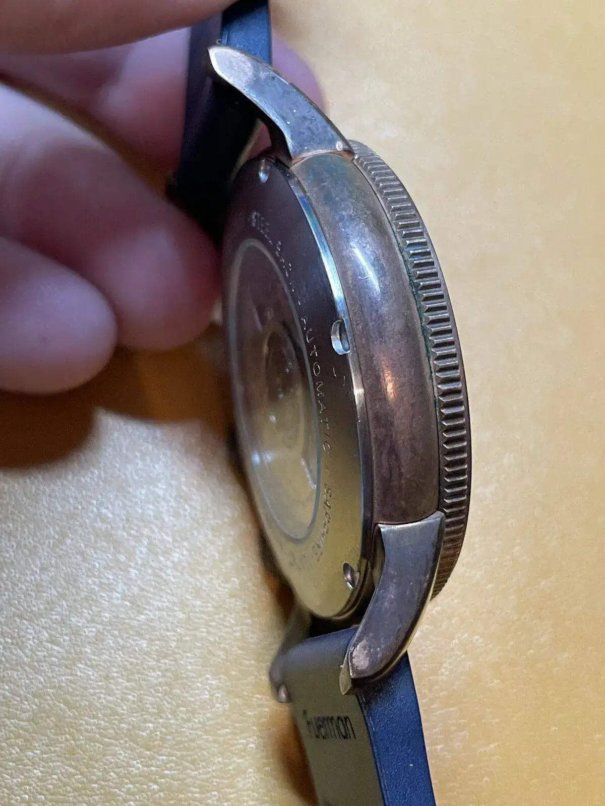 El segundo experimento ha sido mojar con cuidado la caja del reloj con amoniaco y dejarlo dentro de un taper cerrado con amoniaco y sin q este toque el reloj durante 45’.