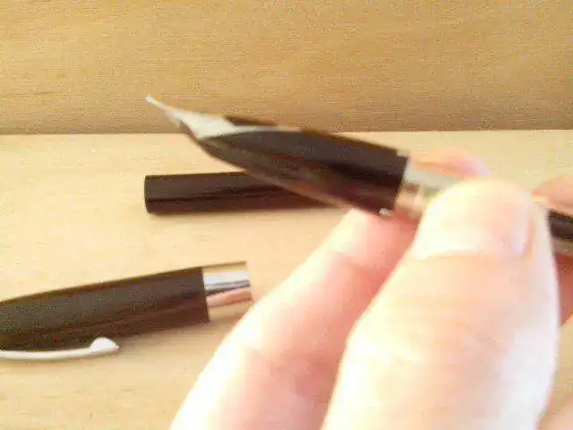 -Plumín inlaid plateado con la inscripción SHEAFFER® y USA en vertical. Es decir, no pone Sheaffer'S, cosa curiosa? Ni nada de kilates.