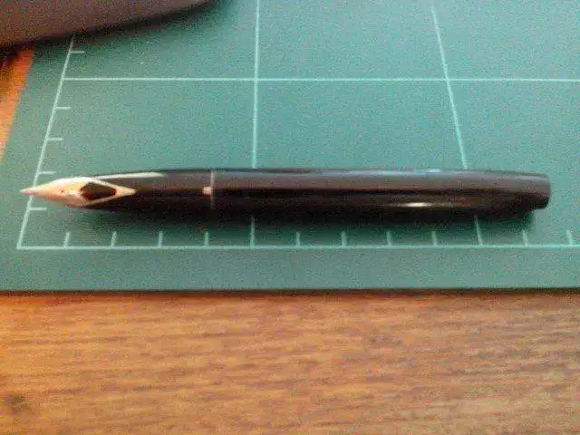 EDITO: Casi convencido de que se trata de una Imperial 330. Si existe alguna consideración más que podáis hacer, lo agradezco. Me gustaría indentificar el Feed, es casi liso sin los típicos 'canalillos', no sé identificar si es punta fina a media, etc. De todos modos veo que es una pieza común, nada del otro mundo aunque dicen que va muy bien, y que aún hoy se puede encontrar en estado NOS por 50 dolares.