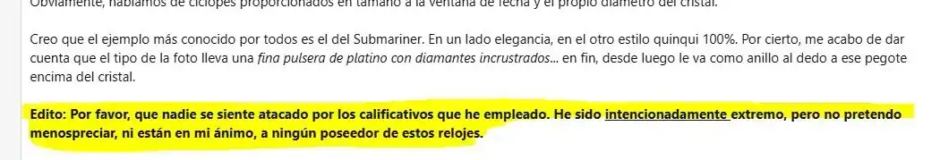 A ver, YO odio las lupas en los relojes. Sólo tengo uno con una, y porque no he podido caparla.Pues yo sólo pasaba por aquí pero...te voy a ser sincero. No llevo mucho en el foro, pero si aquí estoy es por el afán de aprender y compartir y no de discutir. Creo que el mensaje de Iván te podrá gustar más o menos pero es sólo una constatación de las normas del foro, sin ningún lenguaje que pueda llevar a interpretarse como una ofensa hacia ninguna persona. En cambio en tu contestación si que se usan palabras como que LDPC, y ya dirigiéndote en el ámbito personal hablando de la condición de una persona sobre su solidaridad.