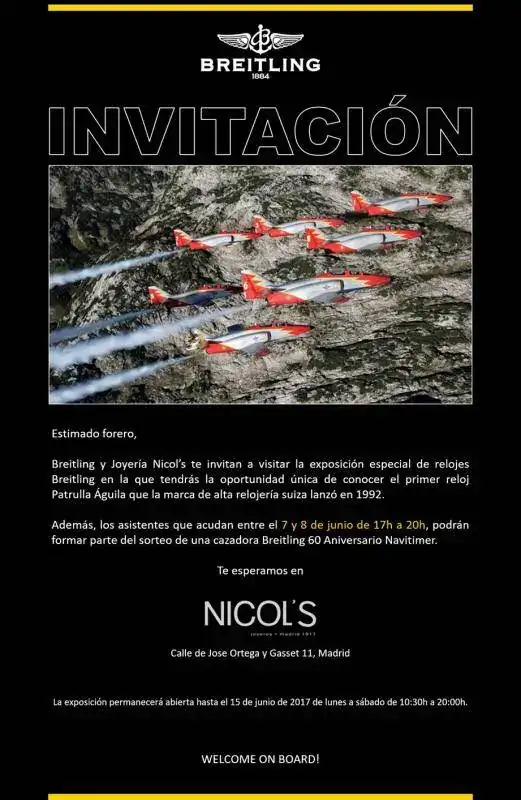 los que andéis esta semana por la Villa y Corte estáis de suerte. Hay una exposición de Breitling, pero además habrá unos días dedicados para los foreros: