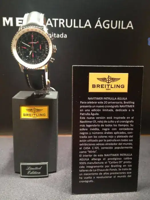La Manufactura suiza de relojes Breitling, en su estrecha relación con el mundo de la aeronáutica, es proveedor oficial de la aviación. En el resto de Europa, Breitling está involucrada con patrullas militares como los Frecce Tricolori en Italia, la Patrouille de France en Francia o la Patrouille Suisse en Suiza y en España lleva más de dos décadas colaborando estrechamente con la Patrulla águila, Patrulla Acrobática del Ejército del Aire. Para celebrar el vigésimo aniversario, Breitling acaba de crear un reloj dedicado a la Patrulla, el nuevo: Navitimer Patrulla águila.