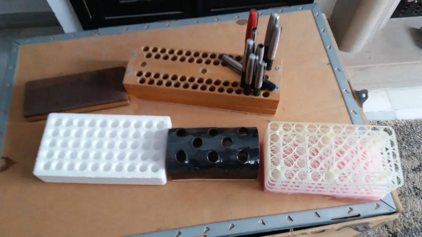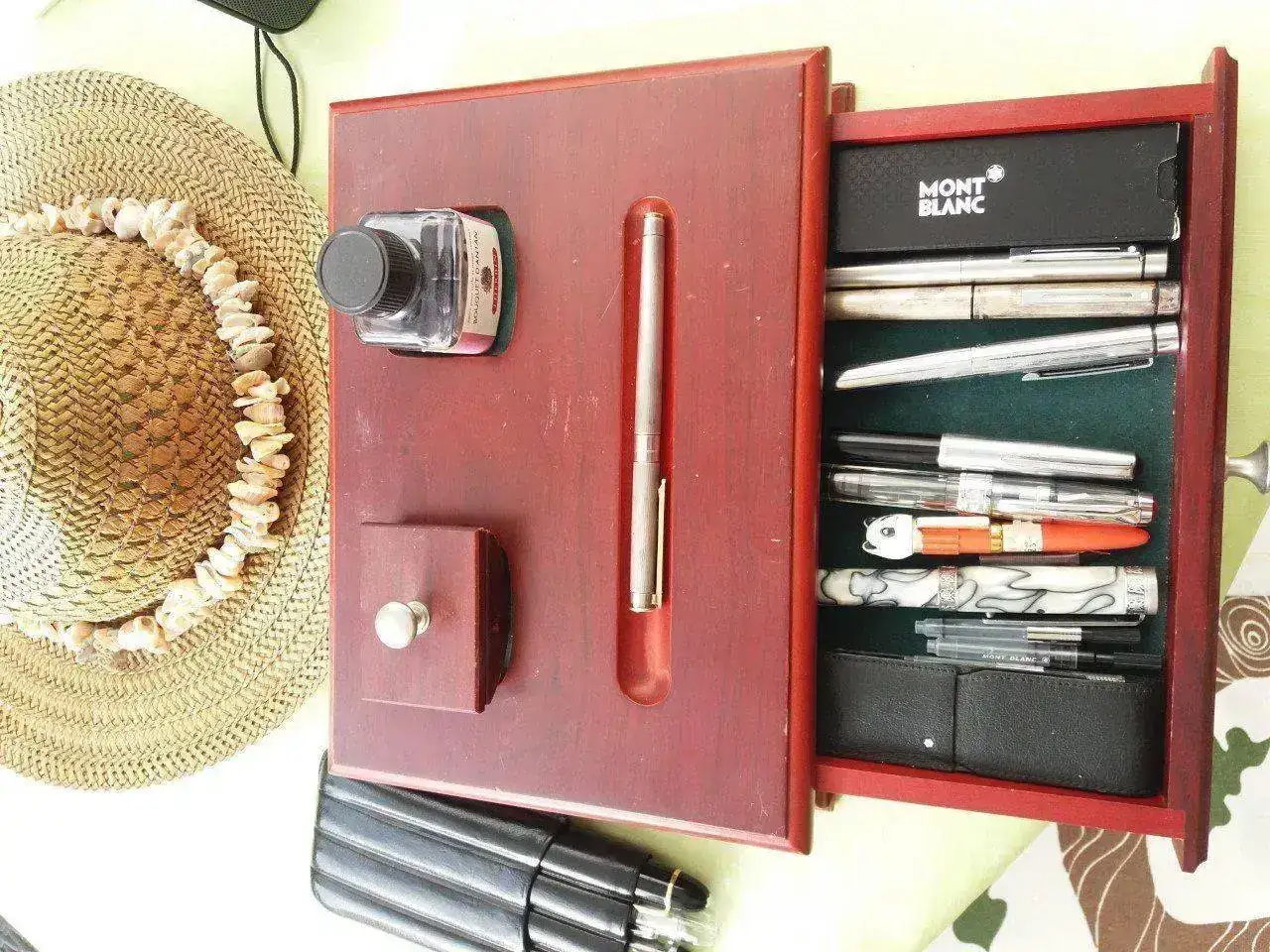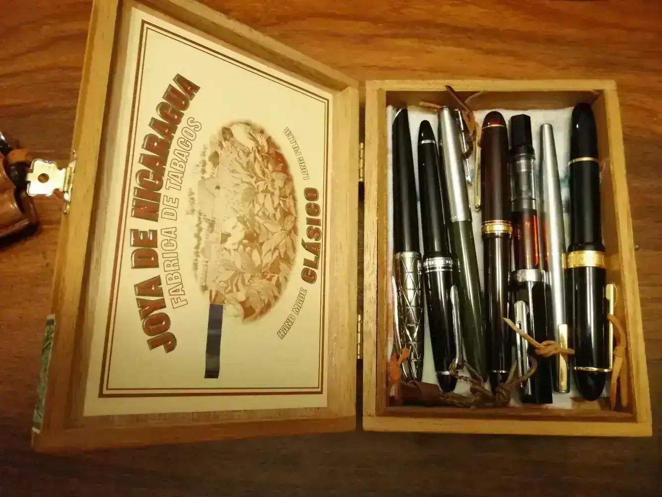Llevo ya un tiempo buscando algún soporte para tener mis plumas: como he comentado alguna vez, unas 30 y sin ánimo coleccionista, casi todas en uso más o menos regular. Desde hace años las tengo todas sobre una balda de 20 cm de ancho justo sobre mi escritorio y me resulta práctico, pero en cuanto cojo una se mueven las otras y no me gusta que se rocen.