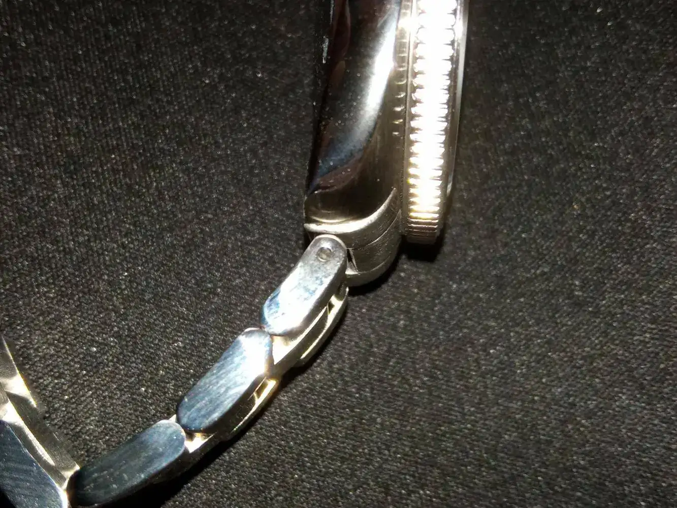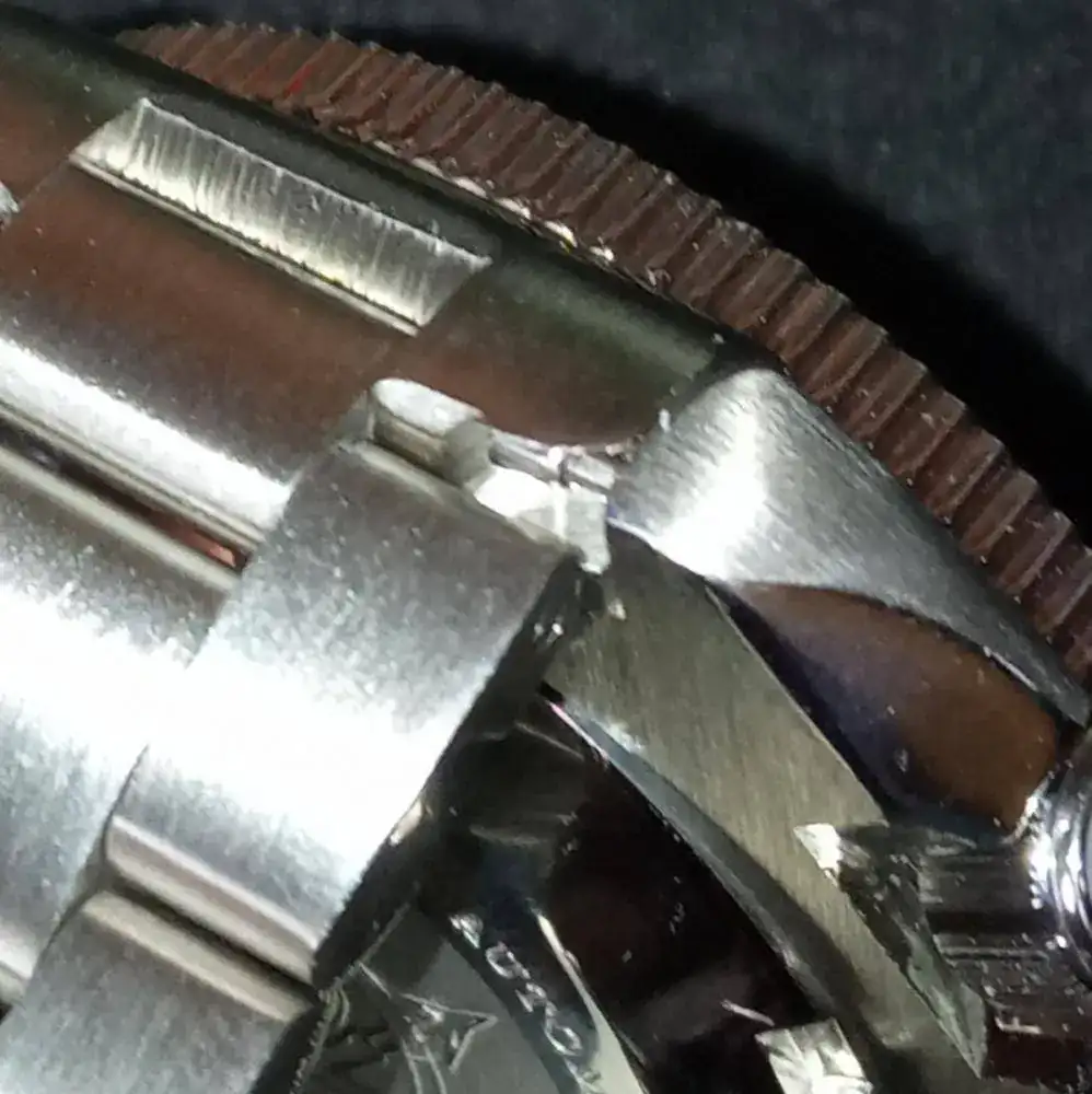 No se si sirve de algo mi experiencia con el Addies, pero por si acaso la comento. Sigo pensando que es un gran reloj por el precio que tiene, en cuanto a las calidades de esta marca...lo primero que vi que no me gustó son los endlinks, que si bien son macizos, en mi caso no parecían encajar bien y además parecía como si a uno de ellos le hubieran dado un mordisco, a ver si se ve en la foto...
