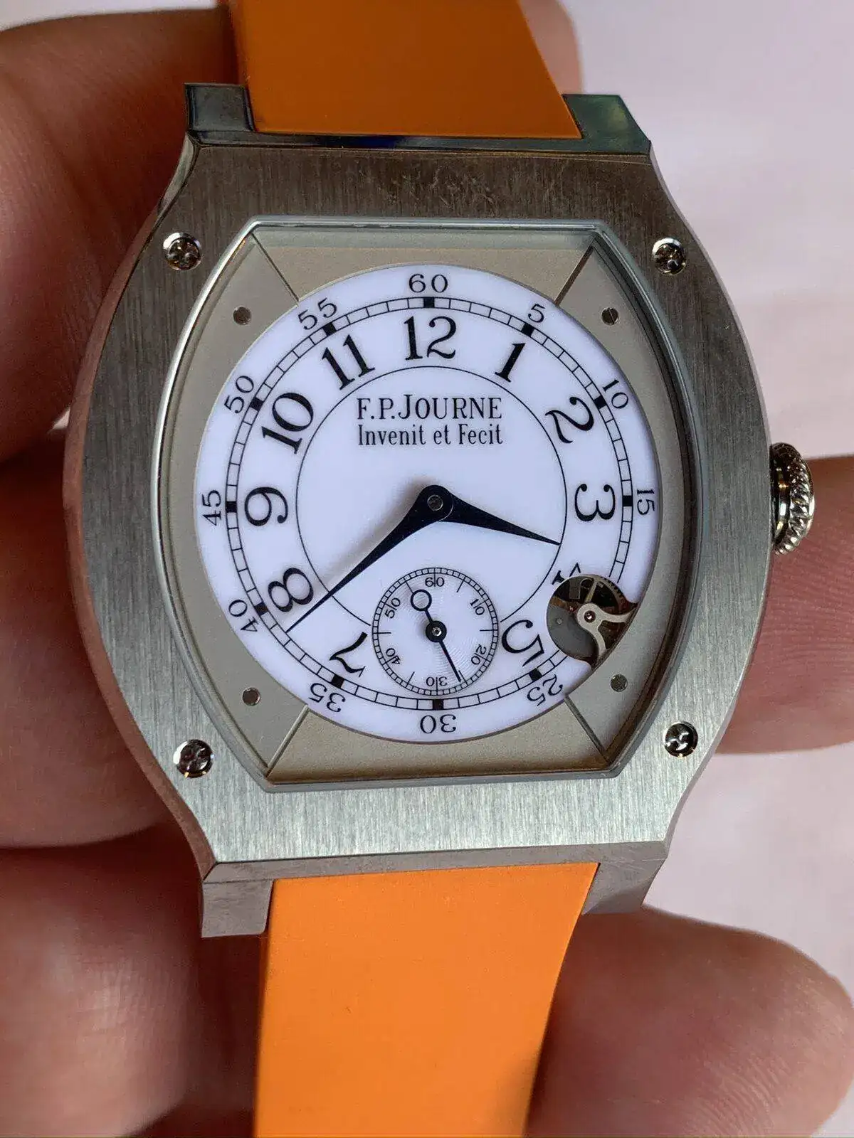Al leer ayer un muy interesante hilo del Spring Drive de Grand Seiko, me vino a la memoria la creación de F. P. Journe al respecto de mezclar el mecanismo de cuarzo con el mecánico. Y recordando lo que descubrí con este modelo de la posible alta calidad relojera de los relojes de cuarzo, me he animado a escribir esta presentación y a publicar lo que yo conozco al respecto. Para los más puristas del foro (y no tan puristas también) el tratar una pieza de mecanismo de cuarzo como algo cercano a la Alta Relojería seguramente sea simple y llanamente un sacrilegio. Pero justo eso mismo pensaba yo hasta que me explicaron las bondades del mecanismo creado por Journe, y me hicieron mirar este tipo de alternativas como una maquinaria también digna de observar. Este modelo es un cuarzo que no tiene ni metales “nobles” ni piedras preciosas en su exterior, y con una estética que además recuerda a los protagonistas de un cuento infantil. Pero sin embargo, algo tendrá cuando cuesta por encima de los cinco dígitos en PVP, tiene una extensa lista de espera para su adquisición, está bastante revalorizado en el mercado de segunda mano, mantiene los estándares exquisitos de F. P. Journe en sus piezas, y se puede mantener sin cambiar la pila probablemente por unos 18 años.