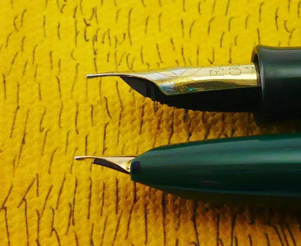 - Plumín bicolor con Punto M. Es flexible; abre bastante y recupera bien.