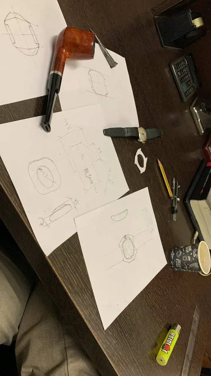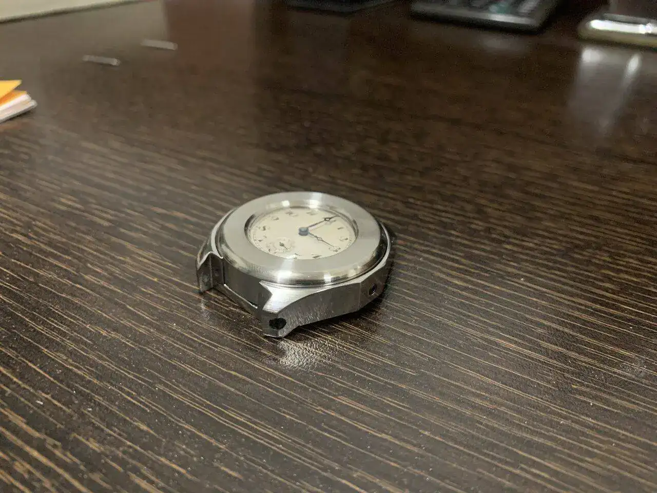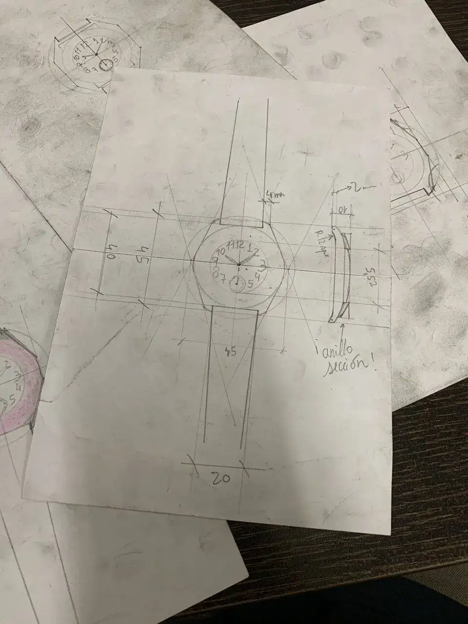 Dicho esto, debido a mi trabajo y a mi obsesión con los relojes, nada nuevo por aquí, me planteé hacerle una caja de inoxidable, de mayor tamaño, en la que cupiese la caja de plata, sin tener que modificar la misma. Una inspiración un tanto Laurentferriana/Audemarsiana, inspiración, claro está haha. Os dejo con las fotos del proceso, planos y fotos del resultado con distintas correas y materiales de la caja. A ver que os parece.