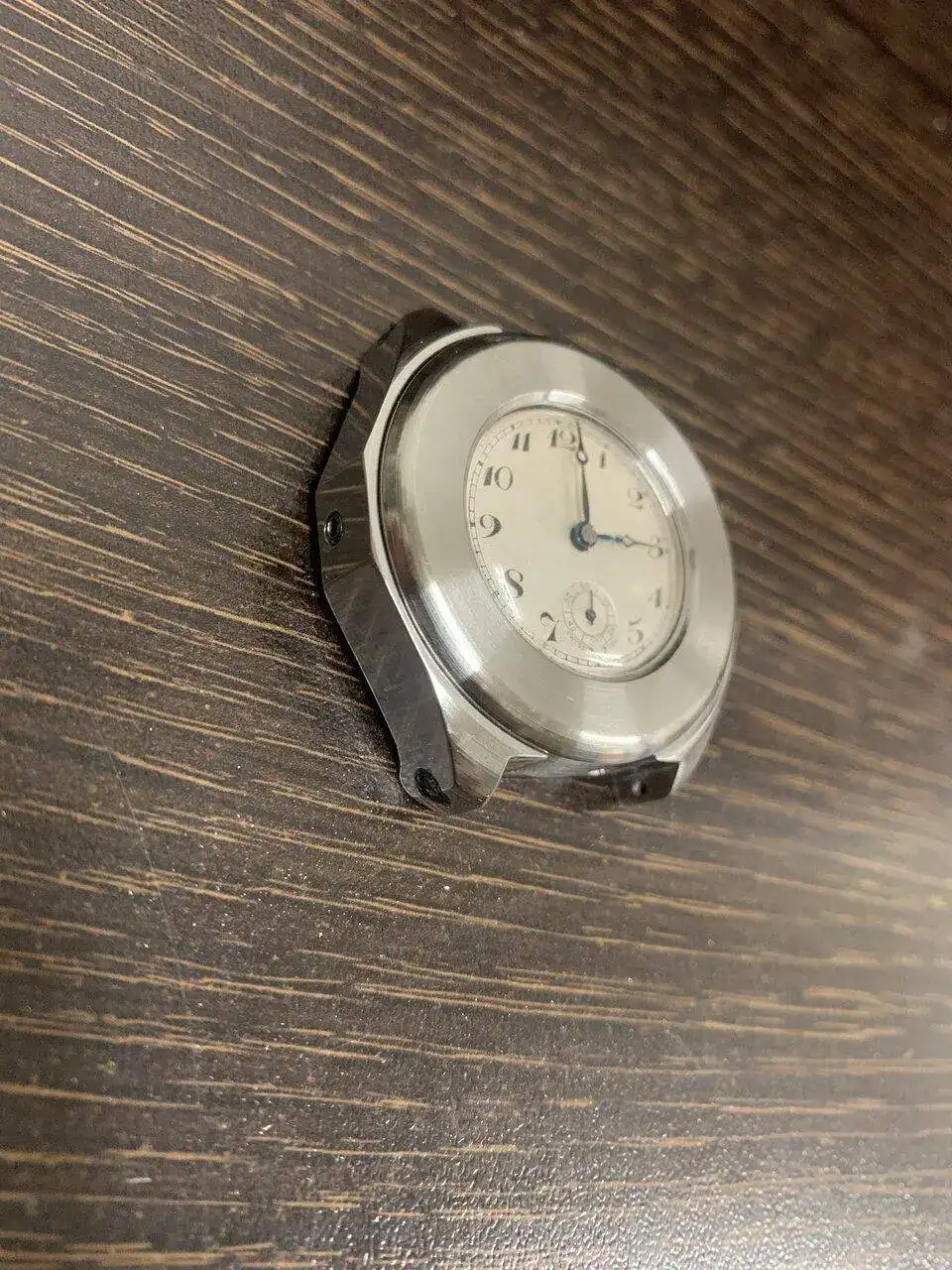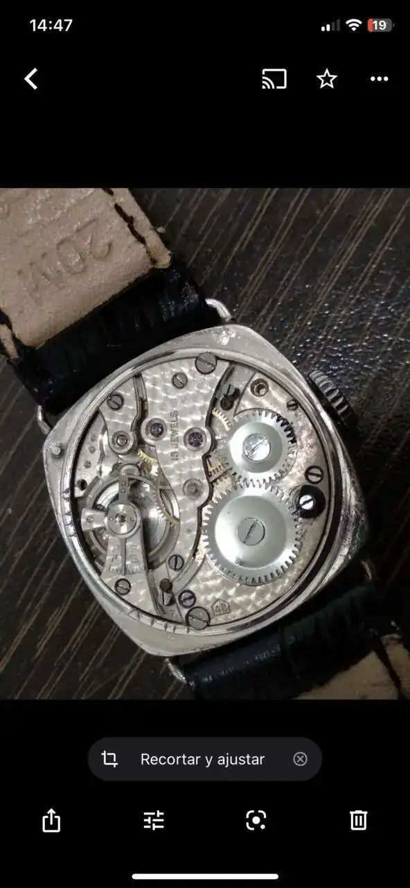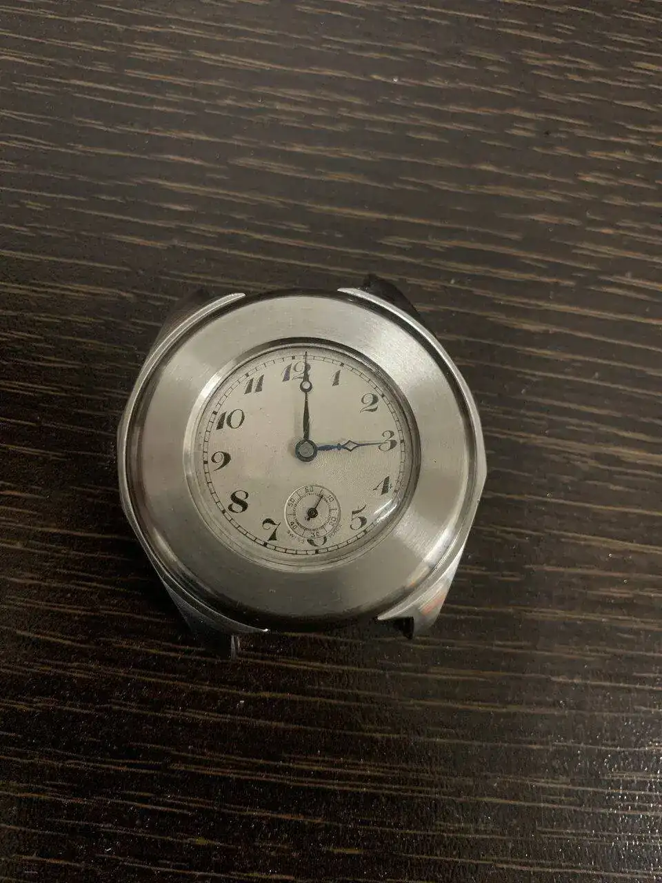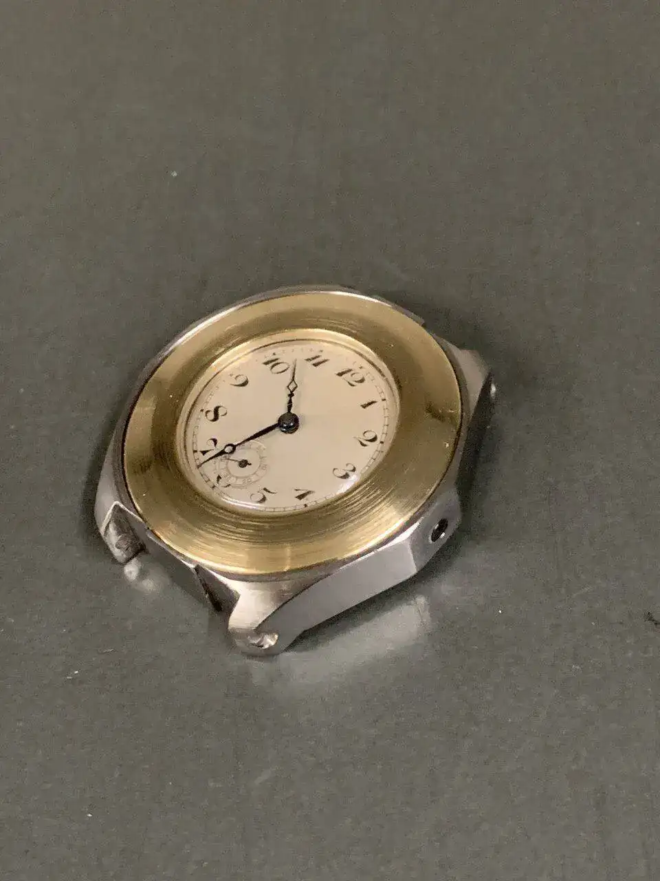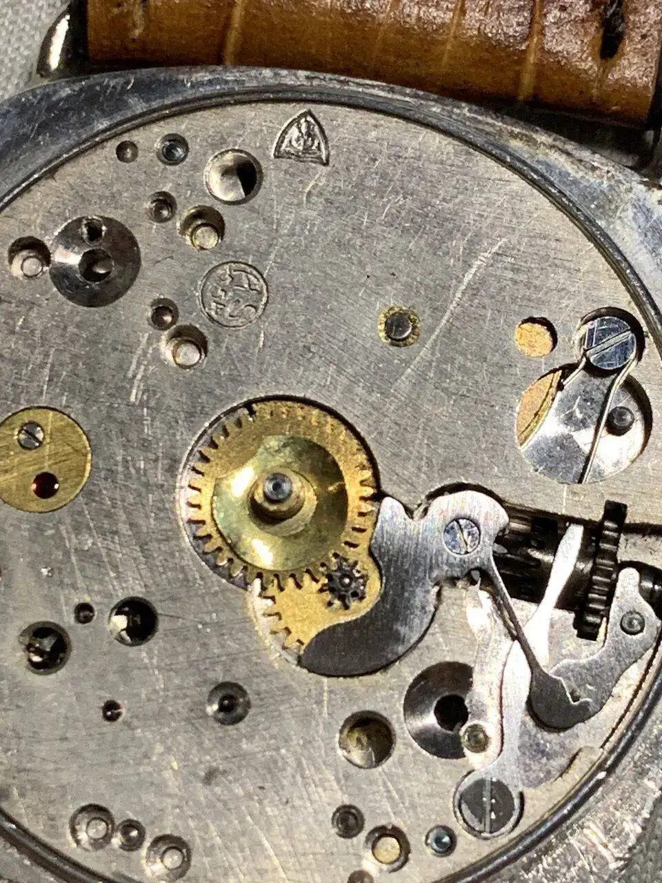 Buenas tardes, hacía ya mucho que no colgaba nada, pero hoy releyendo posts me he animado. Hace ya algunos años, adquirí un reloj de trinchera, pequeñito, 34mm contando asas soldadas, en plata. Un reloj precioso y que recientemente, desmontando la esfera para limpiarla, descubrí que en su interior latía un calibre Adolf Schild 554.