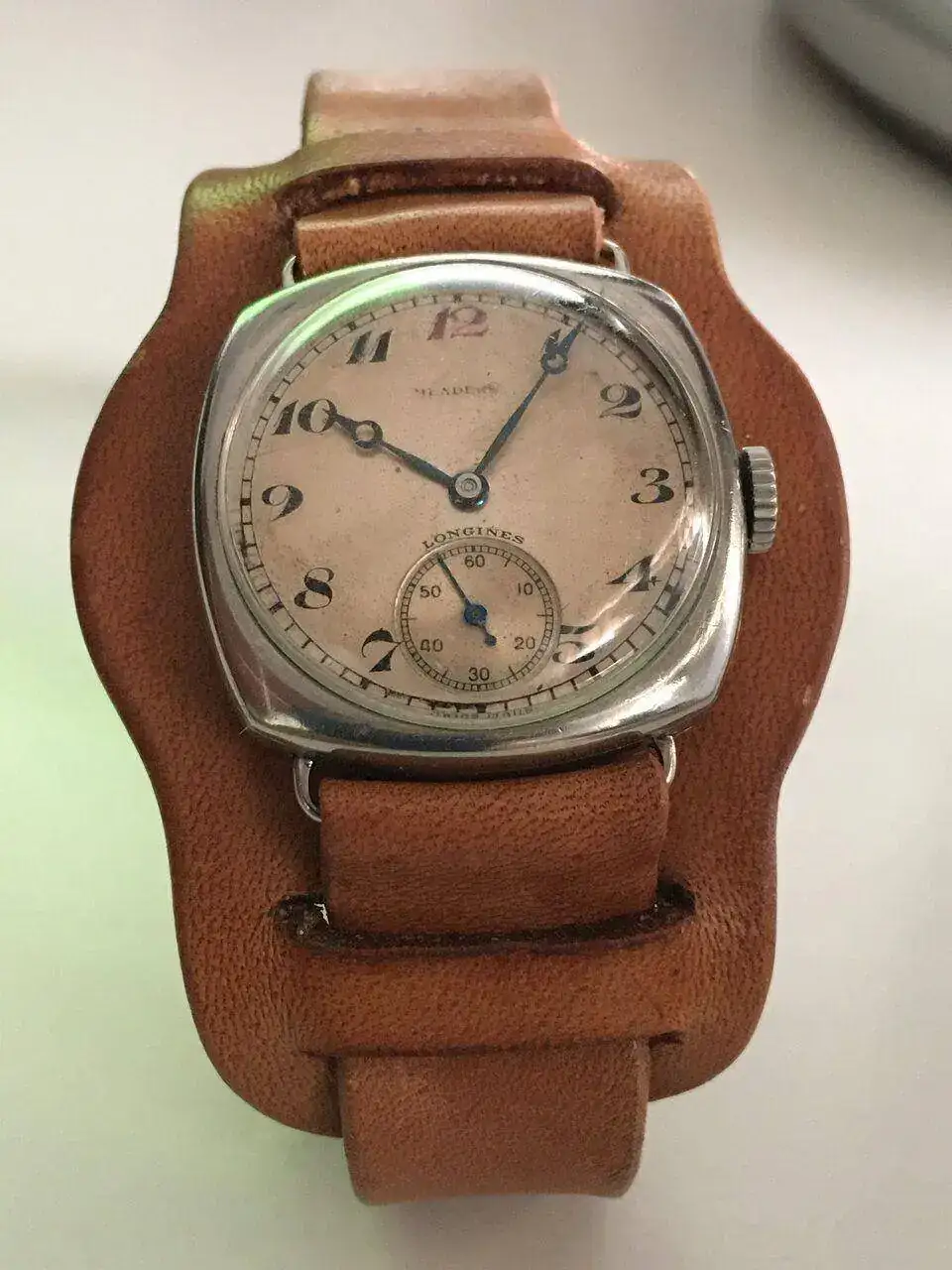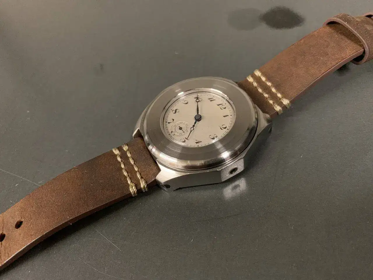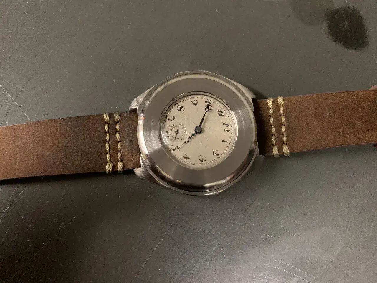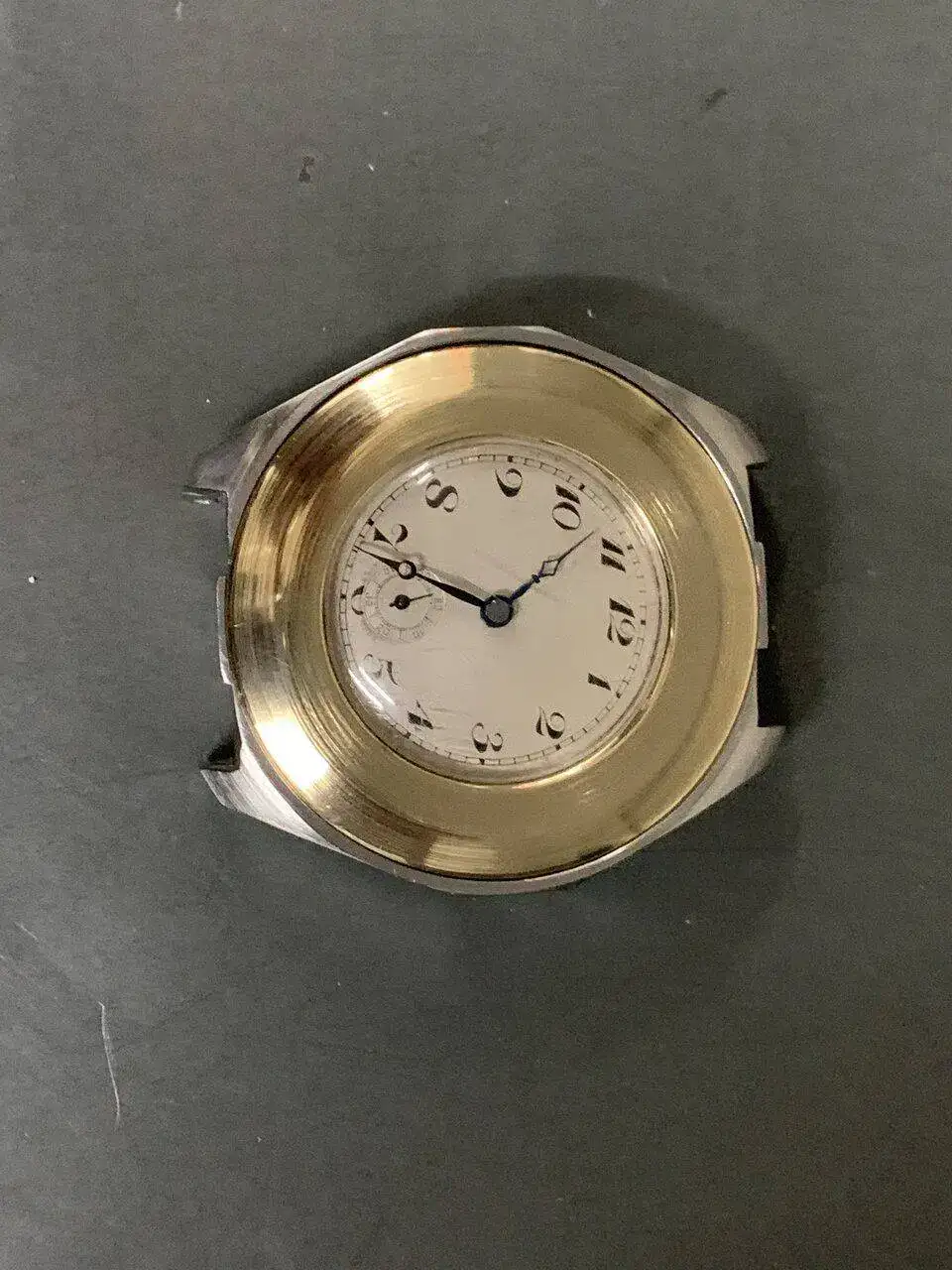 Buenas tardes, hacía ya mucho que no colgaba nada, pero hoy releyendo posts me he animado. Hace ya algunos años, adquirí un reloj de trinchera, pequeñito, 34mm contando asas soldadas, en plata. Un reloj precioso y que recientemente, desmontando la esfera para limpiarla, descubrí que en su interior latía un calibre Adolf Schild 554.