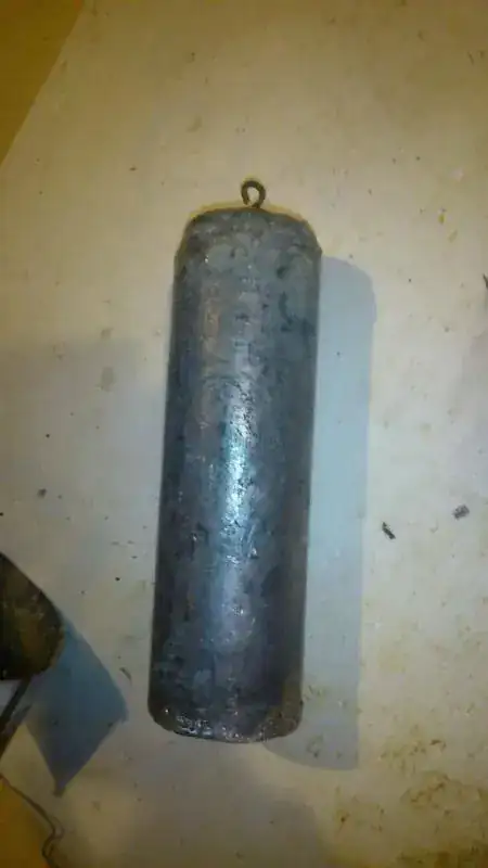 Hola. Siguiendo con la restauración de mi Comtoise, hoy he construido una pesa para ver el resultado y los problemas que pudieran aparecer al realizarlas. Los resultados han sido bastante positivos, como podréis comprobar en la foto.