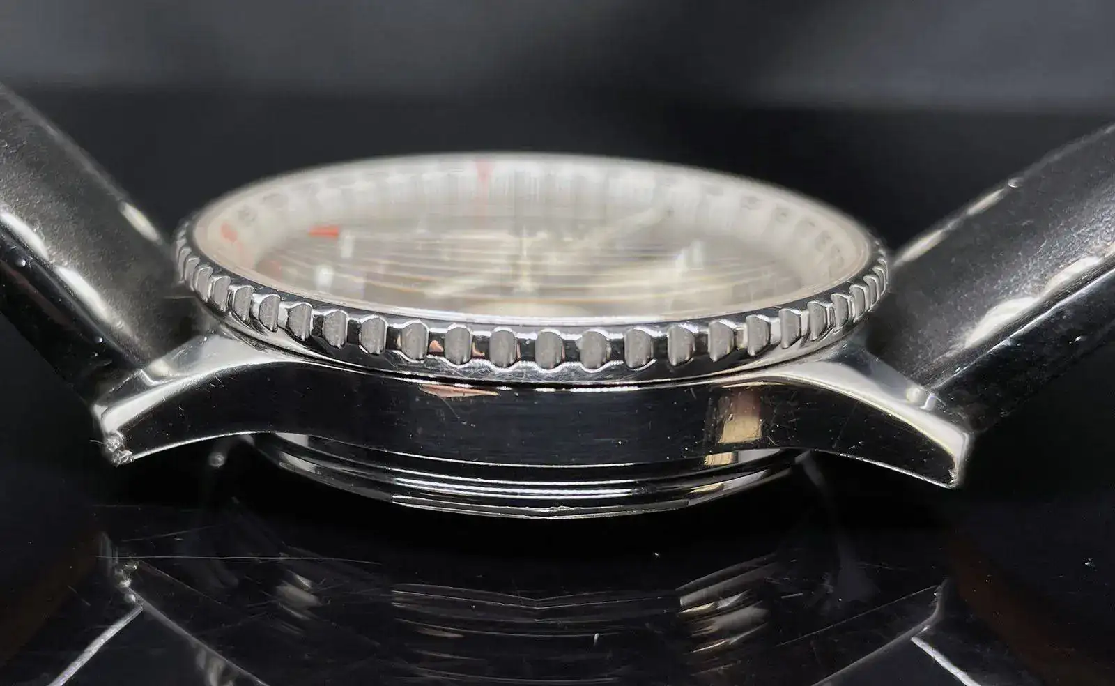 El cristal de zafiro está impoluto, el asa superior izquierda tiene un pequeño picadito en su extremo bajo,