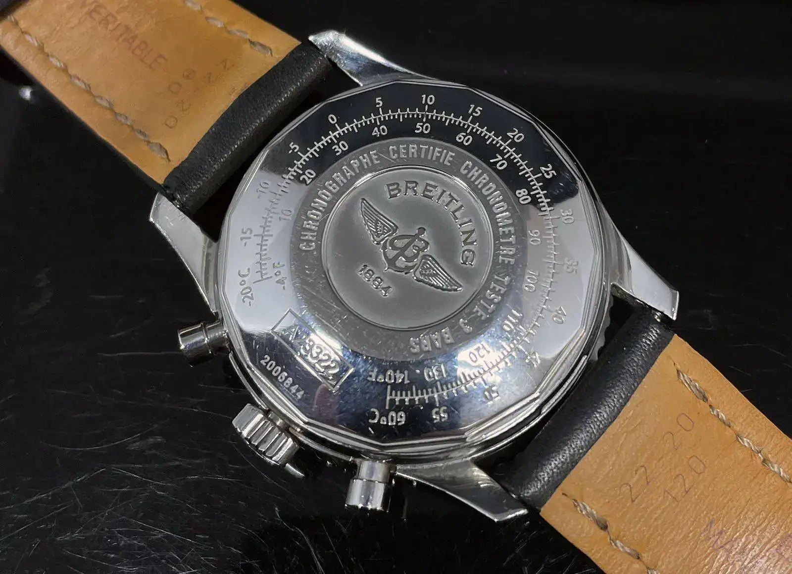 6 correas adicionales de piel en inmejorable estado, se incluyen también 2 hebillas Breitling más.