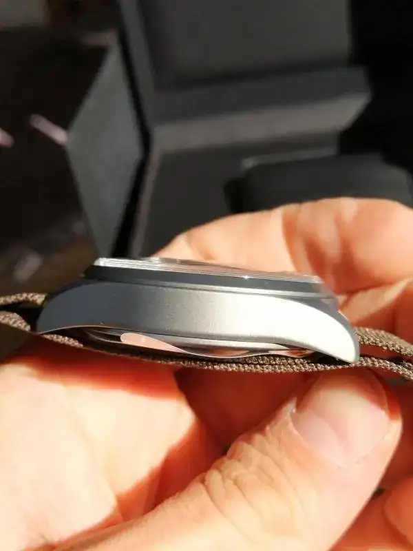 El tamaño del reloj es muy correcto para el diseño elegido. Con una medida de caja de 41mm es suficientemente visible, pero se ajustándose bien a todas las muñecas, incluso las más pequeñas. Su grosor es de solo 12mm, lo que se agradece y da sentido al concepto de reloj ligero.