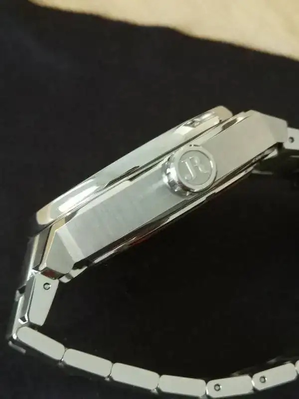 La caja del reloj es confeccionada en acero y combina las superficies pulidas a espejo, con un sutil cepillado vertical que hablan por sí solos de la espectacular calidad en la elaboración de la misma.