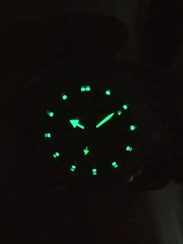 Las agujas e indices están rodiados, haciendo de su brillo algo sorprendente y tienen añadido de Superluminova, por lo que su lumen es espectacular y dura MUCHAS horas.