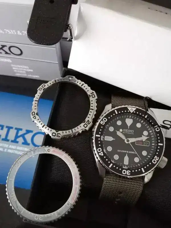 El bisel del reloj es en acero, aunque en la actualidad tiene montado uno del modelo 007, totalmente original y nuevo,adjuntando un tercer bisel pepsi envejecido. El bisel es de 120 clics y tiene señalizador con lumen a las 12.