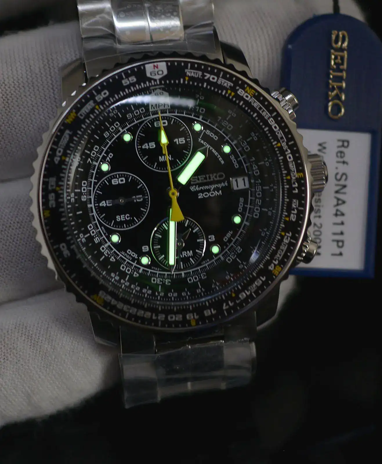 Reloj Seiko, Modelo FLIGHTMASTER Ref: SNA411P1 Cronógrafo con alarma.