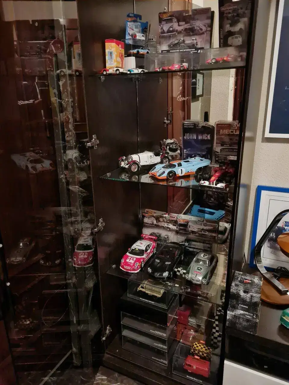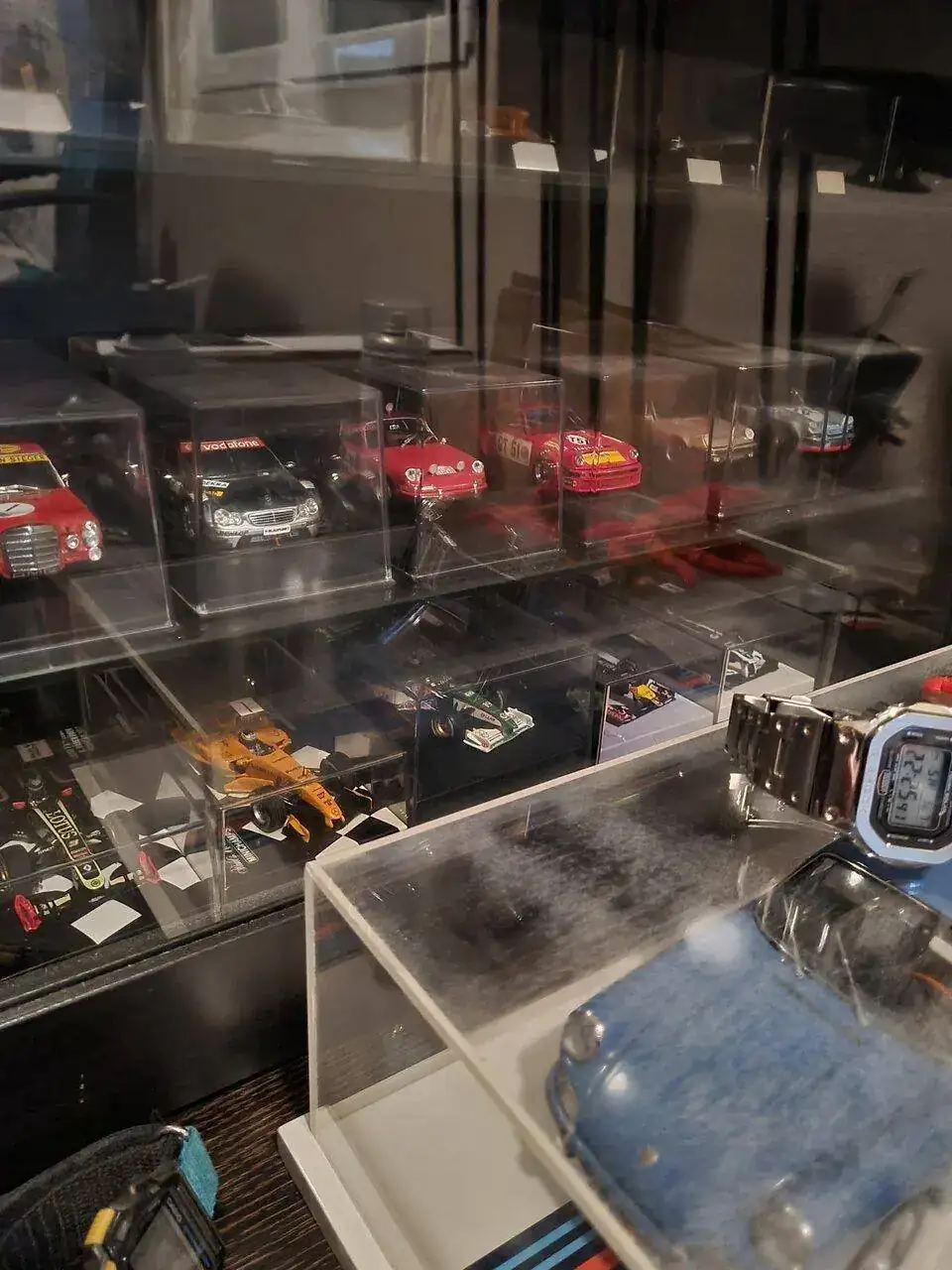 muchas gracias de verdad!!!!!! hay mucho mas por ahi, son muchos años coleccionado , comprando por Europa y demas, lo que me falta es sitio, algunos guardados ya te los enseñare , es mi otra aficion aparte de los relojes, me muevo mas por fabricante , modelo , si ha ganado carreras o no, y gustos personales, o que recuerde de mi infancia , lo que es increible es la subida de precios, hace años lo comprabas por 200 y ahora te piden hasta 1200 por segun que pieza. Este es mi rincon .Qué pasada de colección compañero, no tengo ni idea de coches a escala pero me parecen preciosos.