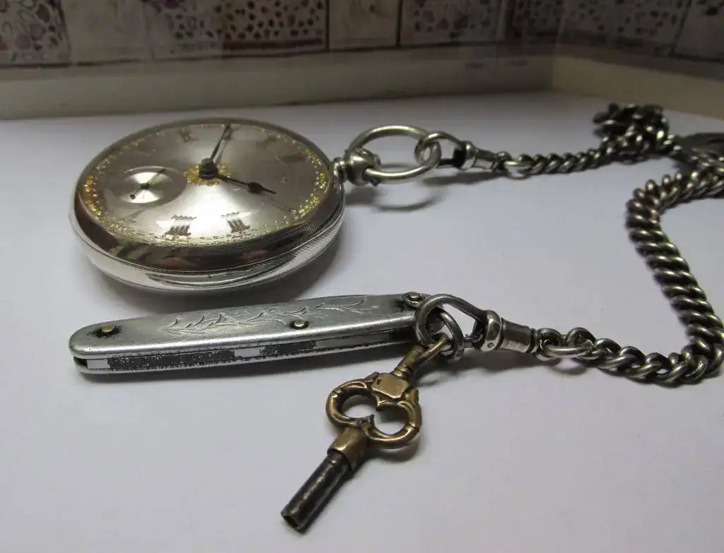 Muchas gracias por la explicación, sabia algo de la navaja y la llave pero me decía que llevar una cadena o leontina, para llevar solo la llave me resultaba raro, también dicen por ahí que era para llevar un bolsillo metálico de plata (normalmente) con cierre para guardar las monedas, pero esto yo no lo tengo claro ya que en esa época esos pequeños bolsitos eran mas bien para las mujeres.