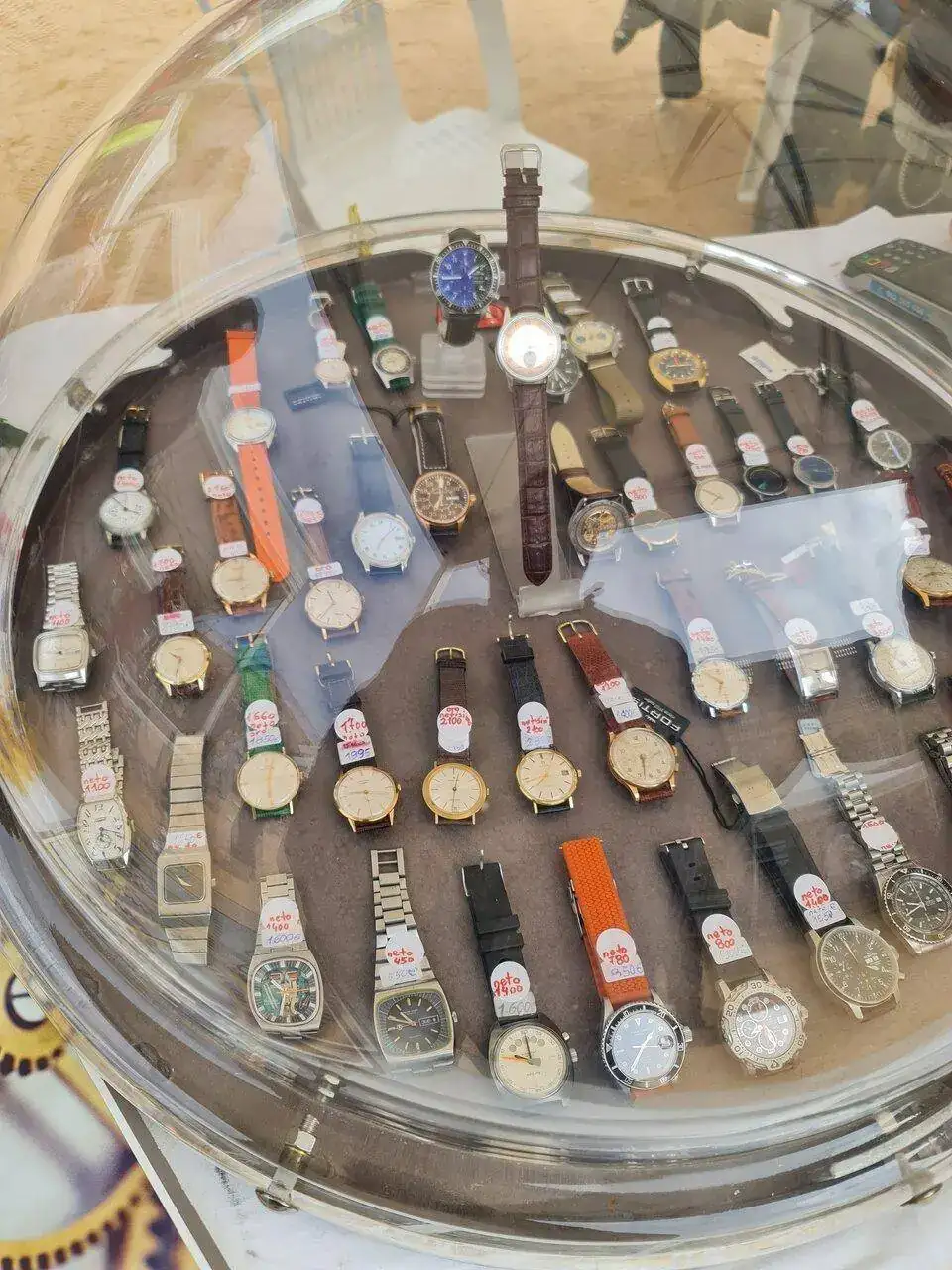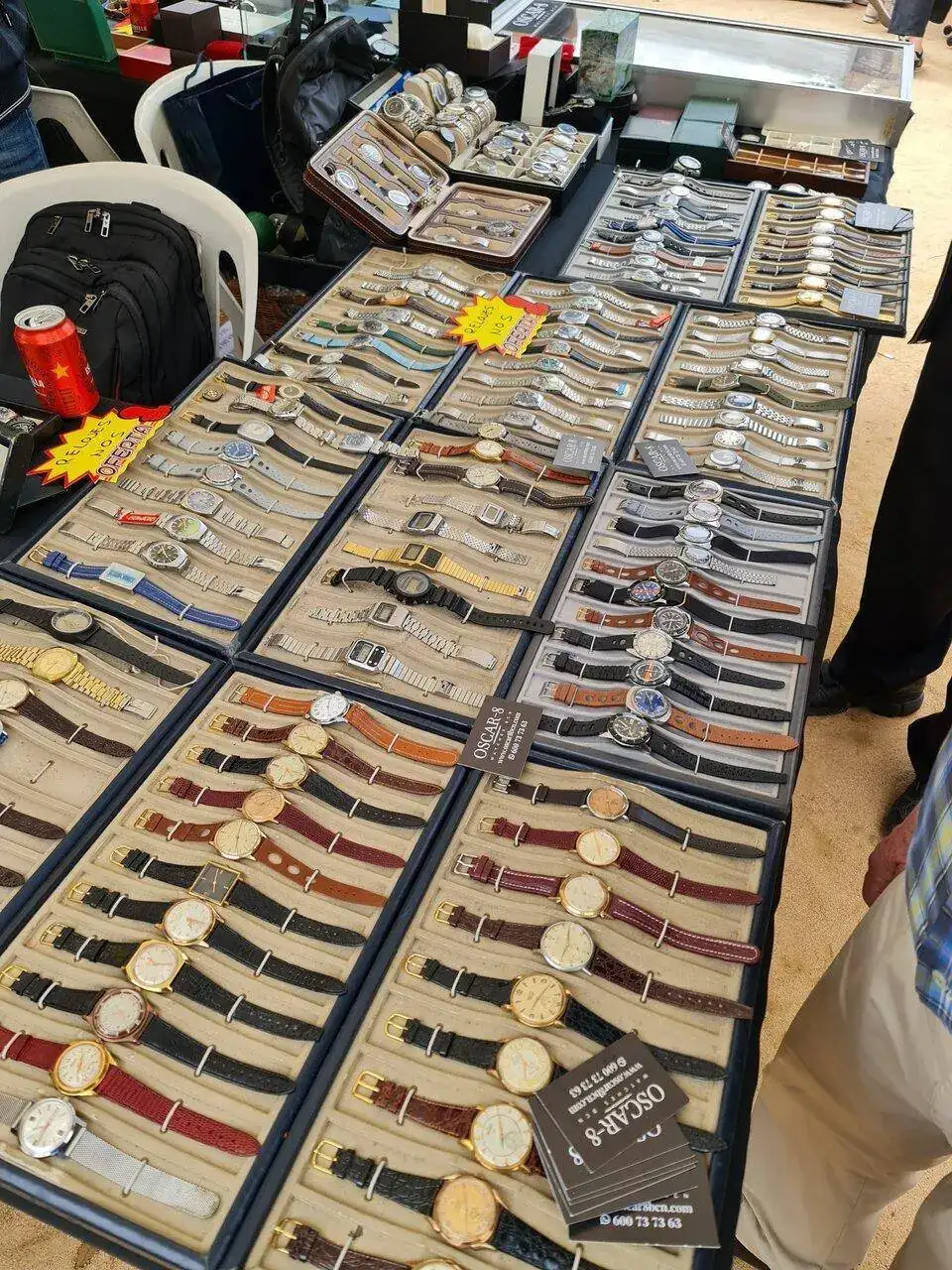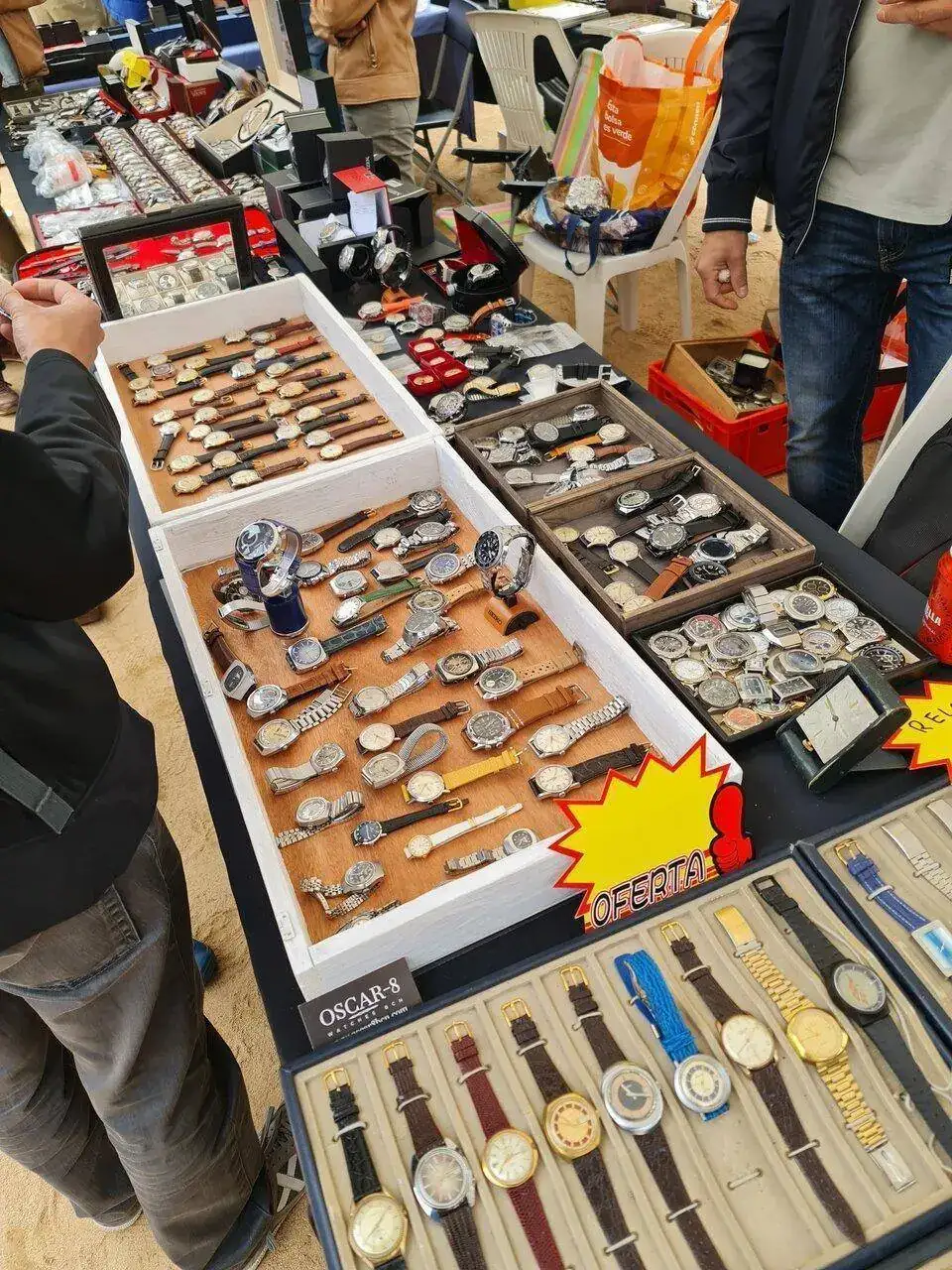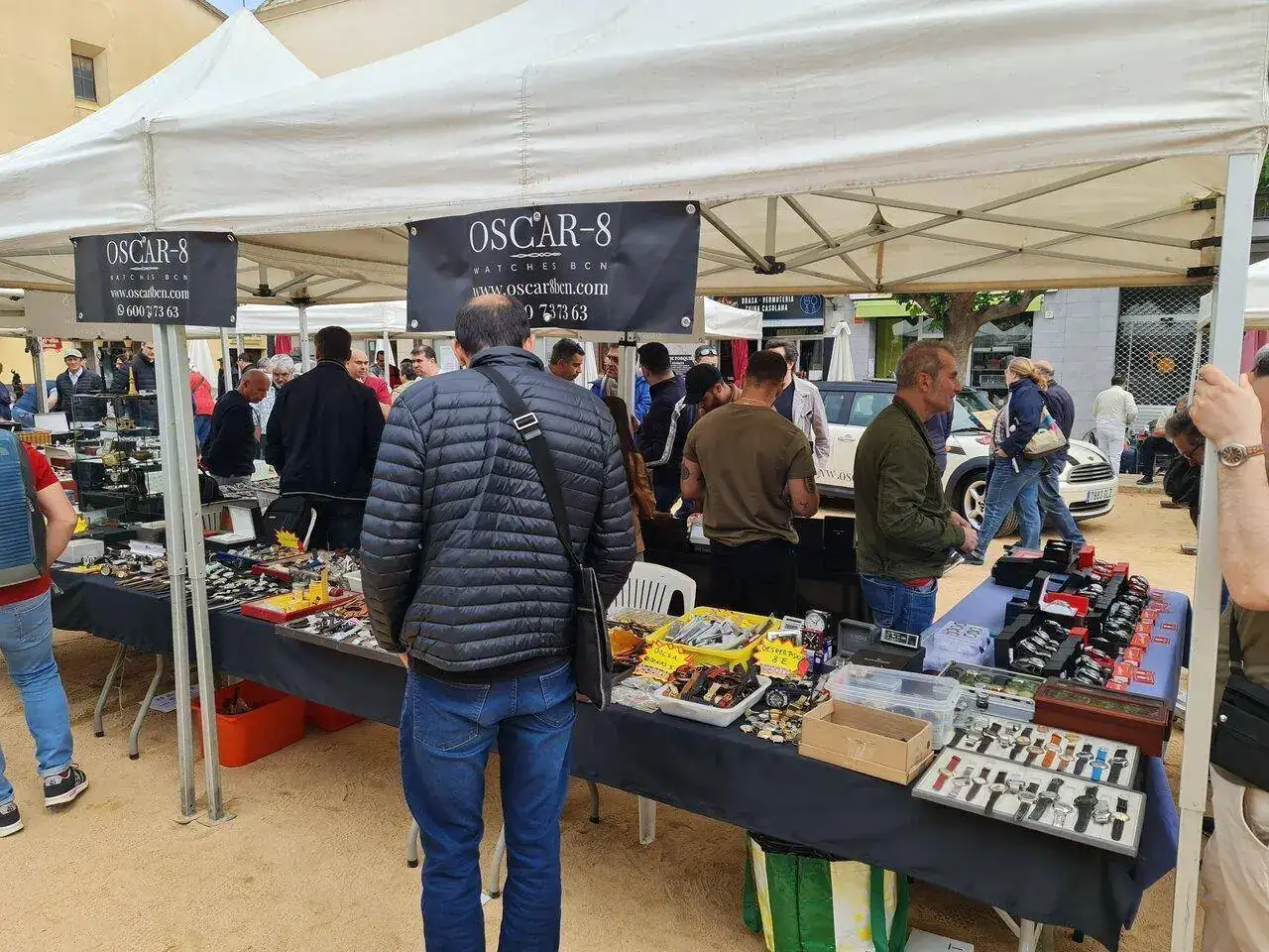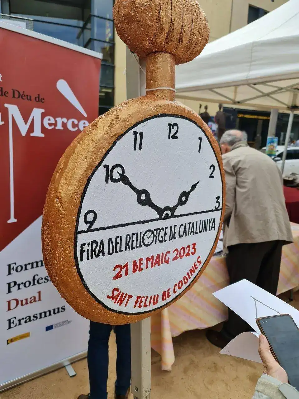 En el camino de vuelta al coche, me cruce con un par de jóvenes, los cuales sentados en un banco, estaban disfrutando de un mecanismo de relojería gruesa, y no me pude resistirme, y fui y les pregunte si eran alumnos de la escuela la Mercè, y así fue, y me enseñaron otra de sus compras, una punzonería, y como no les enseñe mis compras, y les di la brasa con mi libro de apuntes de relojero 1967- 2021 Galy & Cram, sonó el móvil, y no era otro que el conductor diciéndome que si no medaba prisa me quedaba en tierra.