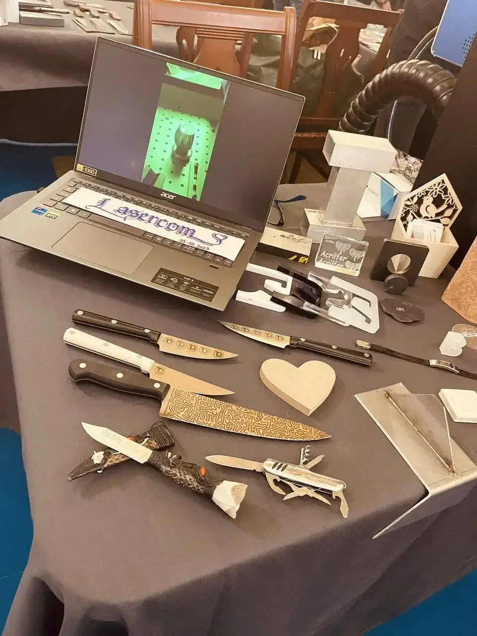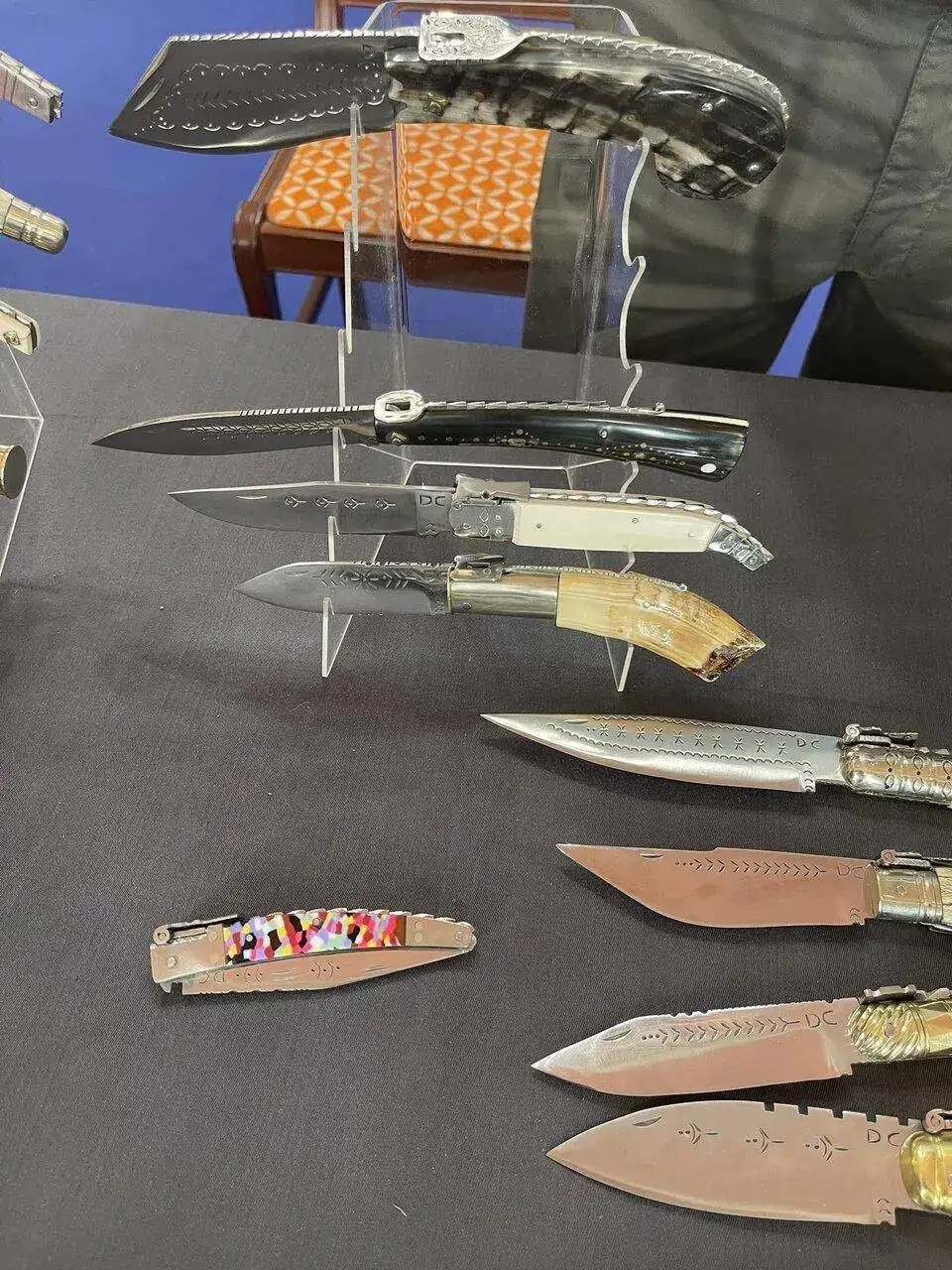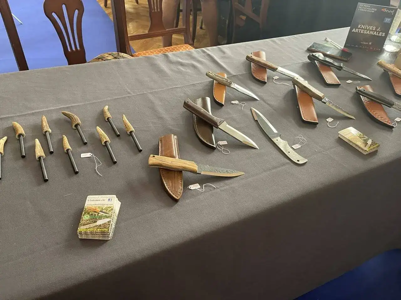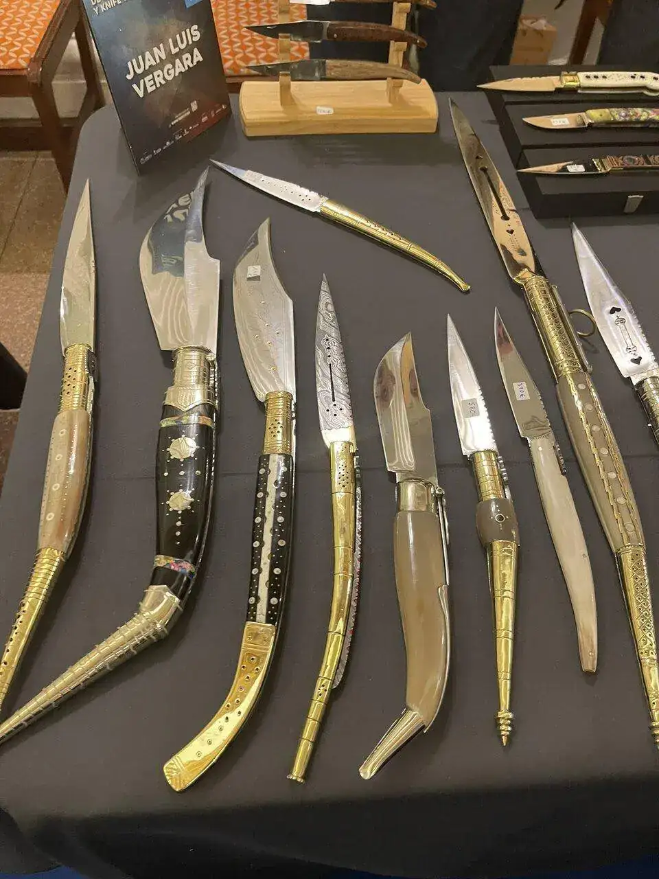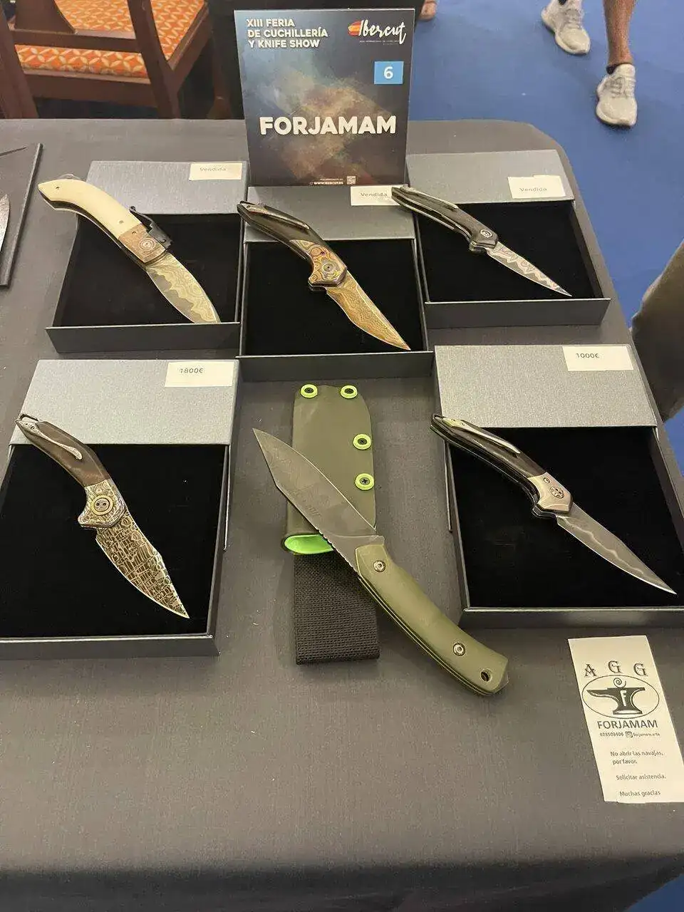 Como ya anticipé en el hilo de relojes y navajas , este fin de semana se desarrollaba en mi ciudad está Feria Internacional de Cuchilleria, y como buen aficionado, yo ya tenia reservada la mañana de ayer sábado para disfrutar de otra de mis aficiones ..., y siendo previsor y por años anteriores , llegué media hora después de la apertura de la Feria, aún así algunas estupendas piezas , ya tenían el cartel de vendido o reservado.