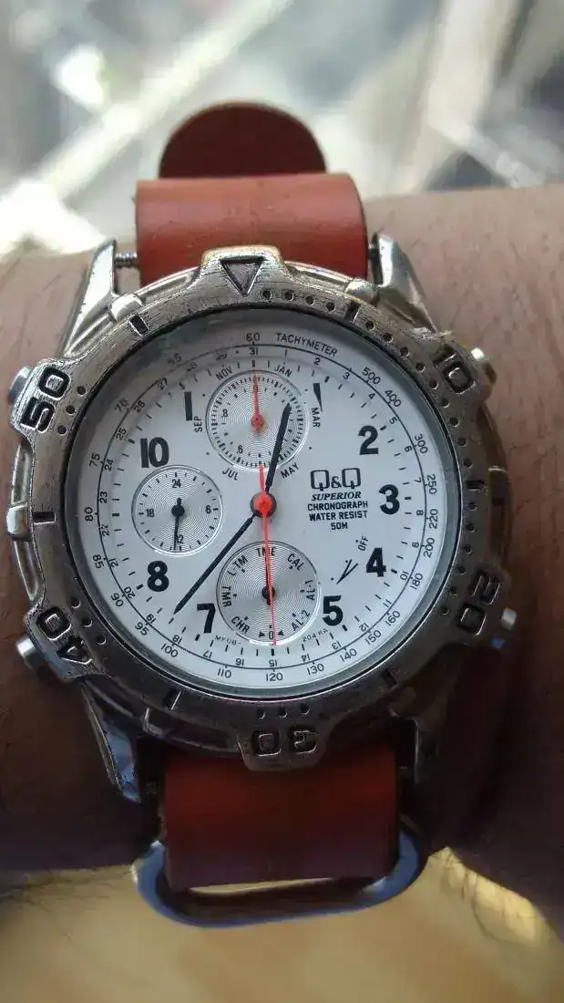 En la foto final el reloj aparece en mi muñeca izquierda, pero normalmente los cuarzos van en la derecha: