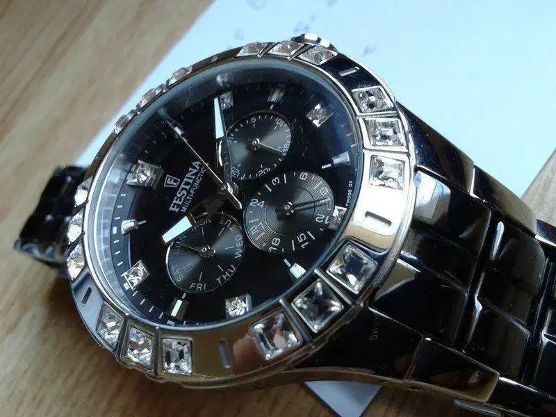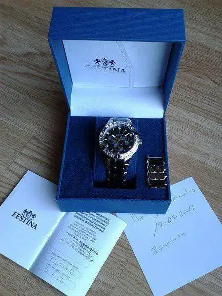 vendo este festina cerámico regalo de enero de este año, con poquísimo uso y los tipicos pelillos en el cierre casi inapreciables su precio de compra fueron 200€ y lo vendo con toda su dotación eslabones sobrantes, garantía mas de un año y medio, caja original por solo 135€ envío incluido.como ya digo esta impoluto y es muy bonito pero para muñecas grandecitas o para quien le gusten los relojes grandes, diámetro de caja 42mm, un buen regalo para una madre, hermana o esposa, las fotos no le hacen justicia pero el fotógrafo y el móvil no dan para mas.