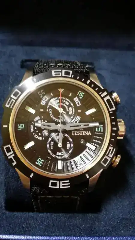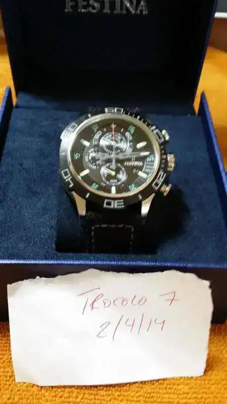 Saludos a todos. Vendo mi Festina comprado el 28/3 del presente, con una puesta y de reestreno. No tiene marca ni pelo alguno, está al 100%. Le vendo porque para mí resulta grande, pero tiene una pinta estupenda y muy llevable con cualquier estilo de ropa. Su precio oficial es de 169 euros, pero yo le vendo por 125 € envío aparte. Viene con la garantía entera, documentación y su caja correspondiente. No quiero cambios.
