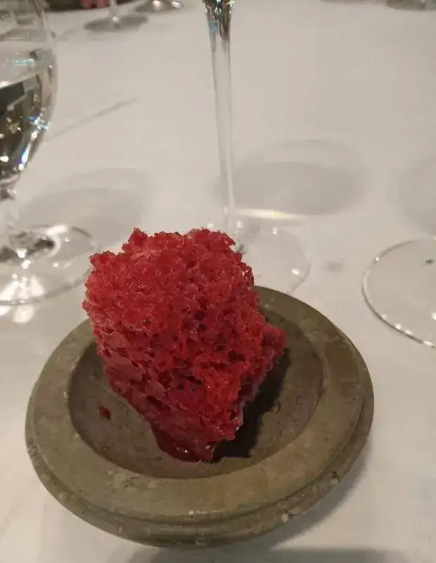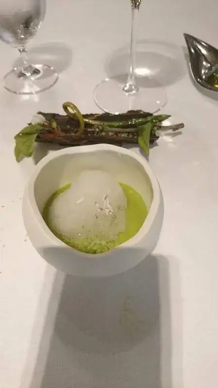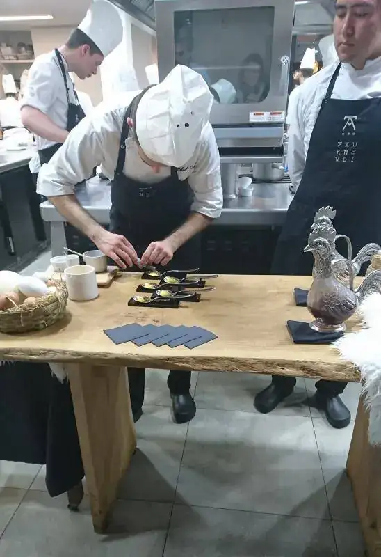 Se encuentra en Larrabetzu, muy cerquita de Bilbao (cuarto de hora en coche) y os dejo un enlace a su página web, por si tenéis curiosidad o ganas de visitarlo: https://azurmendi.restaurant/Todo surgió porque aquí es muy habitual que mientras estamos comiendo hablemos de comidas; ya sean pasadas o futuras. Y en esas estábamos hace unas semanas cinco amigos, degustando una sencilla y satisfactoria cena de txuletón en la barra de un clásico bilbaíno (Goizeko Izarra), cuando se nos ocurrió que podíamos ir a ver qué estaban haciendo últimamente en este afamado restaurante. Ni cortos ni perezosos, en ese momento, entre trozo de carne y copa de vino, hicimos la reserva para este pasado viernes 13. No sé si por los contactos que allí tiene uno de los presentes o por la supersticiosa coincidencia, pero lo cierto es que conseguimos una mesa para cenar