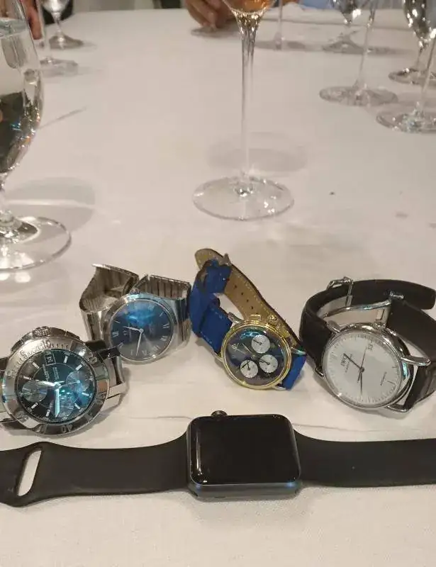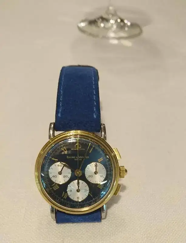 De ahí ya nos condujeron a nuestra mesa para seguir allí con el resto del espectáculo. Ahora os muestro el azulito que venía conmigo: un B&M de principios de los ochenta movido por una hermosa Lemania, la misma que latía en los lunáticos de Omega. No se corresponde mucho con mis estilos preferidos más habituales, pero llegó fruto de algunas carambolas y lo cierto es que me tiene encantada