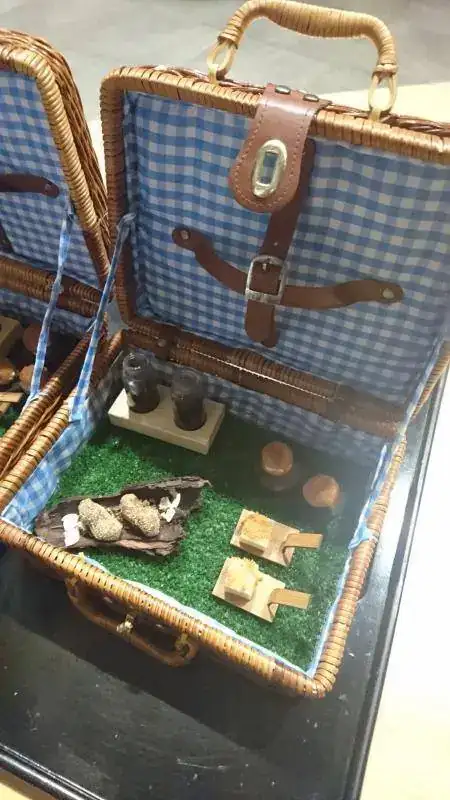 Como digo, llegamos tardecito y ya de noche, así que no hubo visita a las instalaciones que rodean el restaurante. Derechitos al vestíbulo, donde arranca la “experiencia”, como ellos la llaman. Un txakoli y una monísima cestita de picnic con los primeros aperitivos