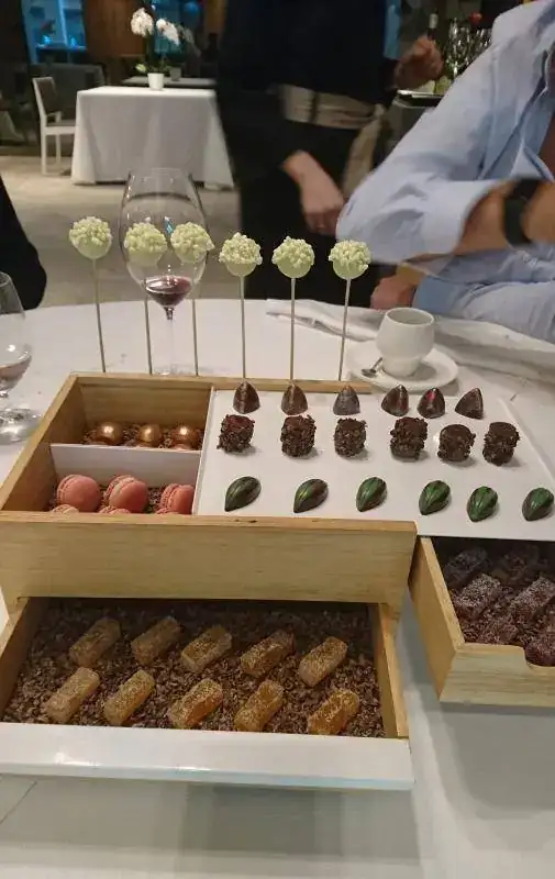 Un par de rondas de cafés (muuuy rico), unos petit fours y un destilado que probé y me sorprendió gratamente