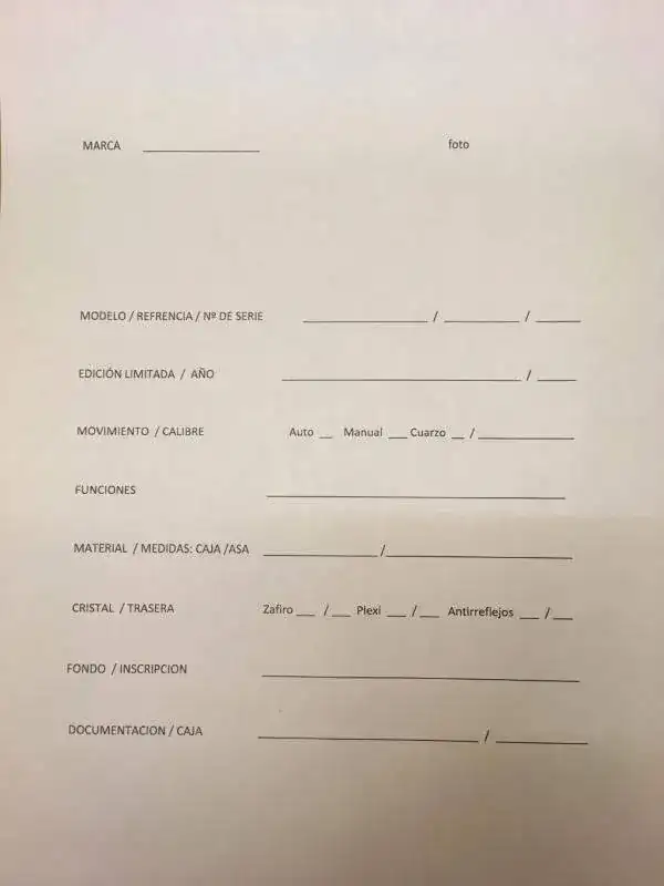 Buenas , quiero fabricar unas fichas para anotar las características de los relojes.