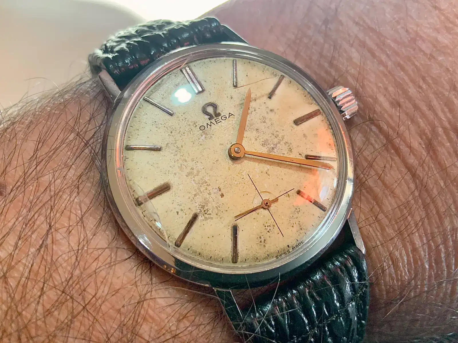 Resulta que esta mañana en la oficina un compañero (sabiendo de mi pasión por los relojes) me ha traído el Omega de su padre fallecido hace años para que le aconsejara sobre si vale la pena o no restaurarlo. Mi respuesta ha sido la que le suelo decir a todo el que me pregunta estas cosas: valdrá la pena dependiendo de lo que el reloj signifique para ti.