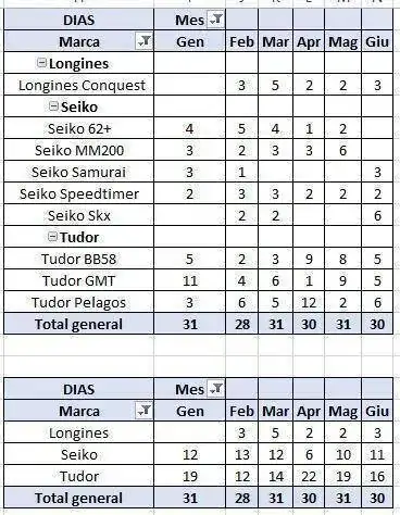 Al final todos tenemos en mente la rotación de los relojes, pero muchas veces los sentidos y las percepciones se desvían bastante de la realidad. Así que después de 6 meses puedo decir con precisión que esta ha sido la actividad de mi colección en la muñeca.