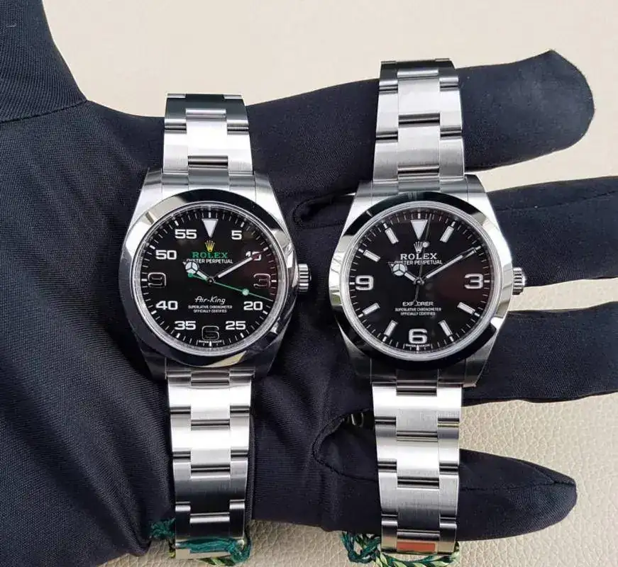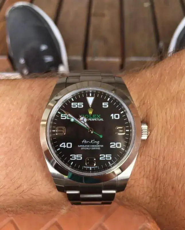 , peroooooo me lo veo más serio, y me da la sensación de más pequeño ( ya ves que es solo 1mm menos que el Air pero me da la sensación) El Air, me parece diferente, con una estética que lo odias o lo amas, en este caso me encanta, al igual que el explorer también queda bien con todo, y en cualquier situación, un poco más deportivo, un rolex menos visto, más juvenil, y..........,“ menos Rolex” entiéndase por menos Rolex, por la estética menos clásica y salirse un poco de la imagen Rolex, pero esa Coronita amarilla, no sé si me cansaría