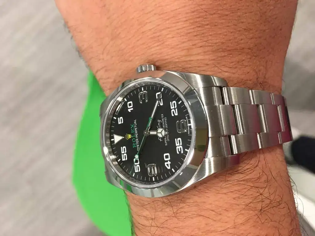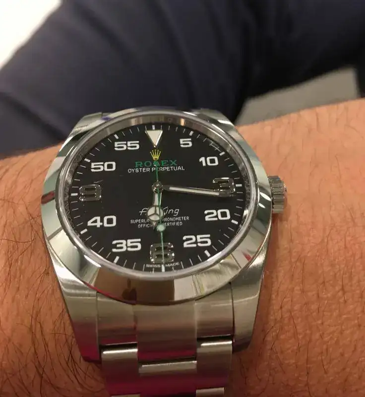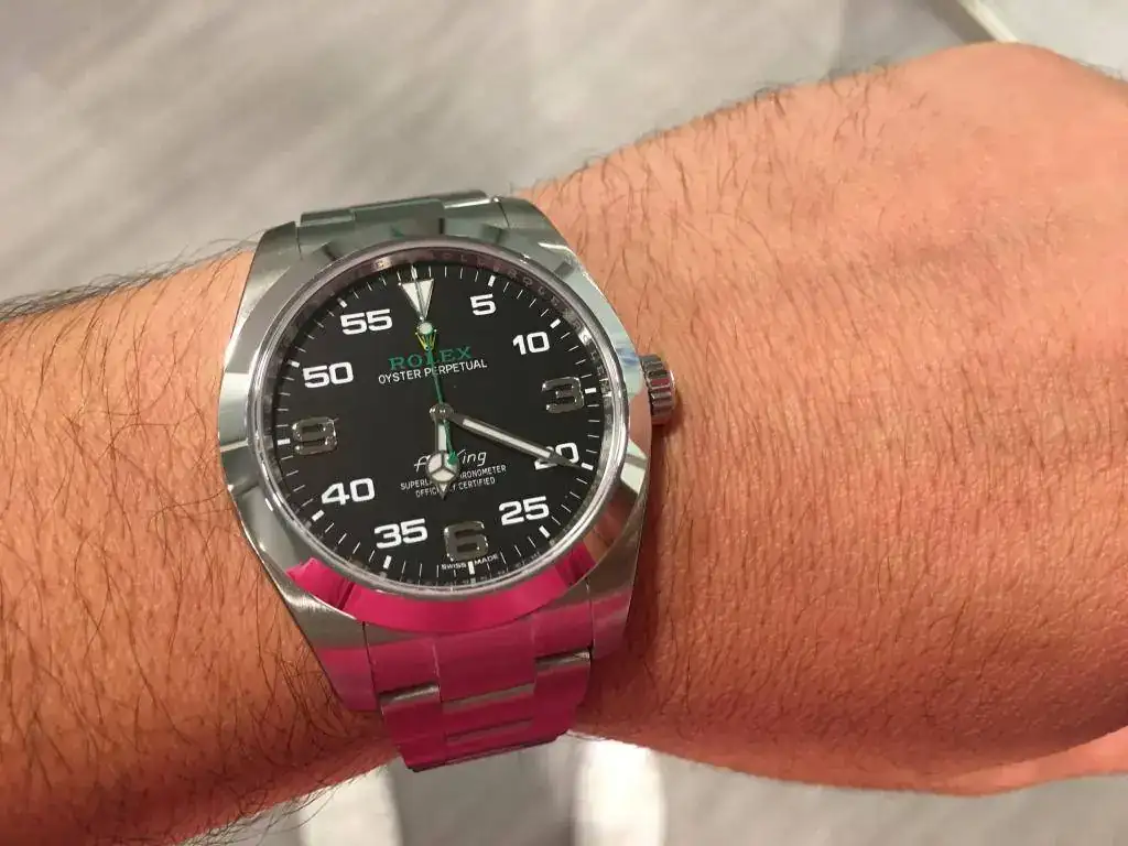Pero hoy he ido con un diver de 41, para no notar tanto el cambio de reloj, es como cuando estás con sneakers todo el día y al final te pones zapatos de vestir al llegar la noche, entonces claro los zapatos molestan, así que sabiendo que el Air es más pesado y alto de caja que el explorer, decidí llevar un reloj parecido para no notar el cambio ( pesos y alturas ) porque entre el Air y el explorer, va todo a favor del explorer, peso, altura de caja.....etc