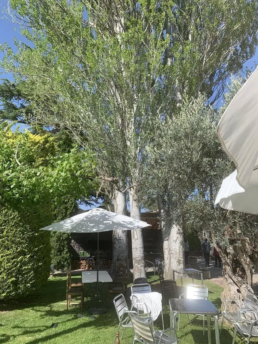 Acto seguido, buscamos un sitio para irnos a comer, y nos llamó la atención el Restaurante La Masía, así que allí nos fuimos, acertamos al 100%, un sitio tranquilo, un jardín magnifico, con verde por todos sitios, arboles, flores y un ambiente de relax, y no digamos la comida, todo muy bien, casi nos tienen que echar de allí, ya que estuvimos casi 4 horas entre comida y charla jaja