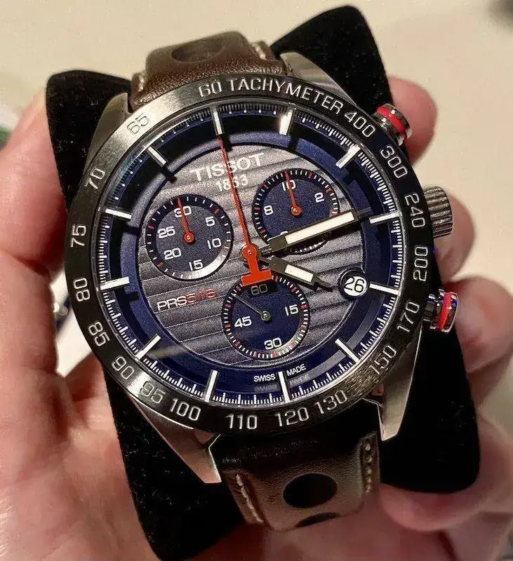Efectivamente. Los índices, así como la escala de minutos y segundos, están elevados sobre la esfera al nivel del bisel del taquímetro.Parece un reloj de pared 😜