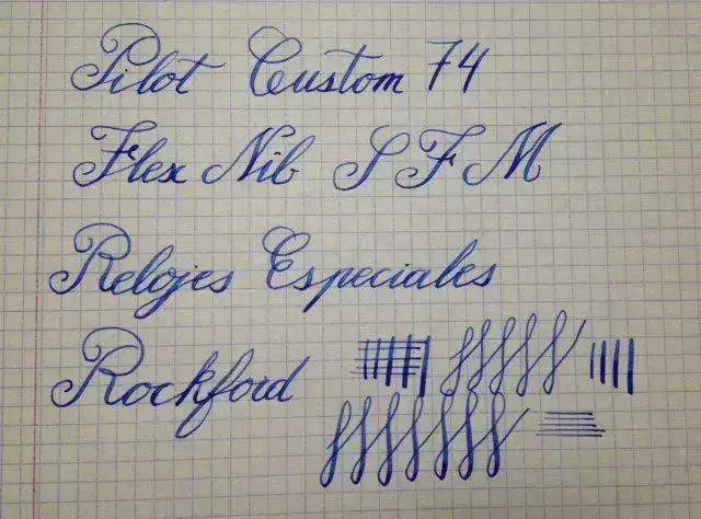 Hacía tiempo que no presentaba ninguna pluma y creo que hoy es la primera vez que no voy a enseñar ninguna yaya. Siguiendo con mis "flexibilidades" os adjunto fotos de esta Pilot Custom 74, con plumín de oro 14 Kt y punto SFM (Soft Fine Medium). Se caracteriza por ser muuuuuy suave (no me atrevería a decir similar a una Sailor, pero...) a la vez que presentar actitudes flex. La diferencia de trazo es de fino a medio jugoso y la verdad es que el plumín se desliza como la seda. No se clava para nada ni rasca en absoluto, tema muy recurrente en las flex. La pluma viene directa de Japón, por cierto 4 días sólo en llegar, y el vendedor ha tenido el detalle de regalarme dos sobresitos de te verde japonés. Ahí os dejo las fotos y espero vuestros comentarios. Saludos a los compis del foro, y no reñidme por estar un poco desaparecido.