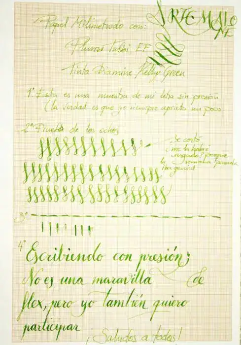 Yo voy a intentar hacer un vídeo también que queda muy lucido. Es un placer ver cómo se desliza el plumín. Mi letra no es gran cosa, pero creo que en vídeo queda la prueba más lucida. Hasta el sábado no podré montar el chiringuito, pero me reservo la mañana del sábado para esto. 🙂