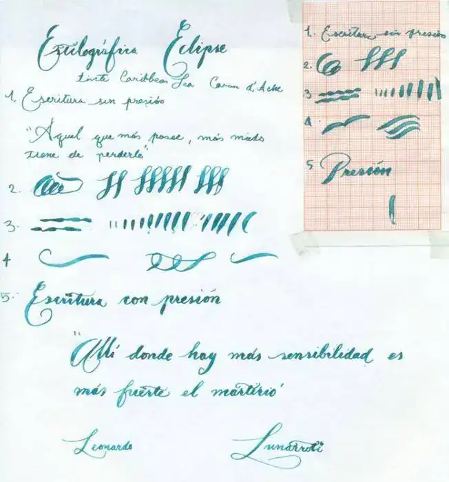 3.- Estilográfica Eclipse, bueno de esta pluma no le he seguido la pista y no estoy muy informado. Esta logra una buena apertura, pero tengo que agregar mas presión.
