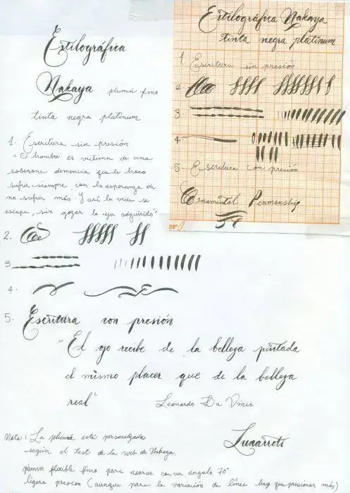 2.- Estilografica Parker Challenger, a mi parecer su flexibilidad es muy buena, que logra una apertura de 2mm y con muy poca presión.