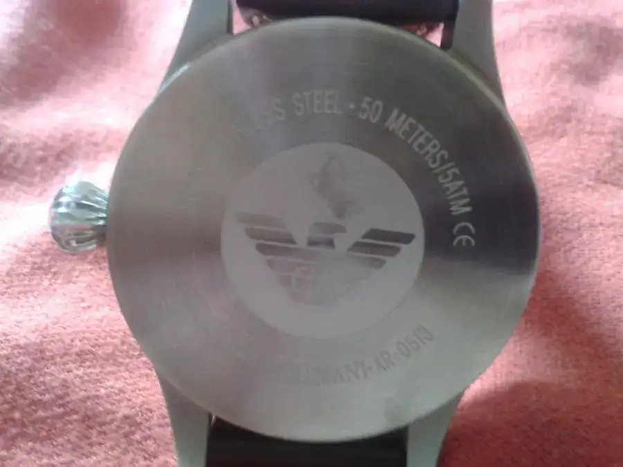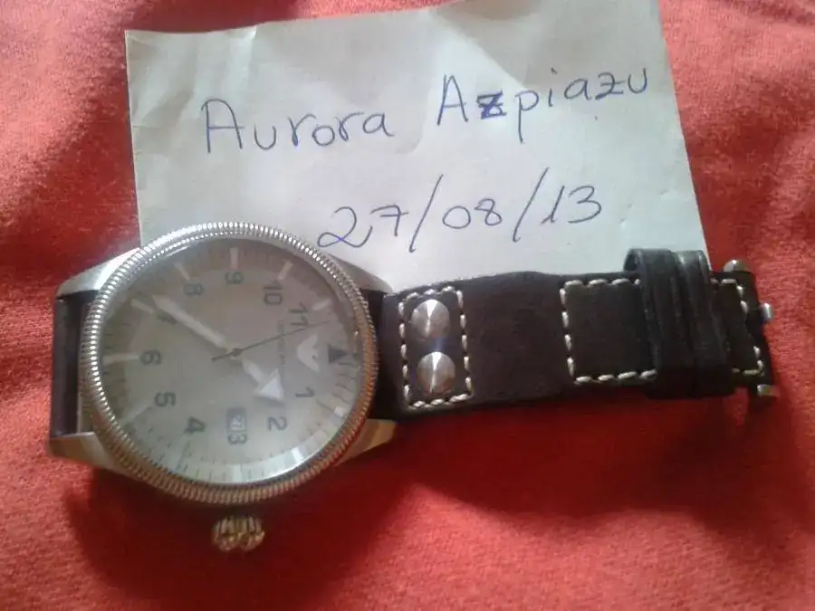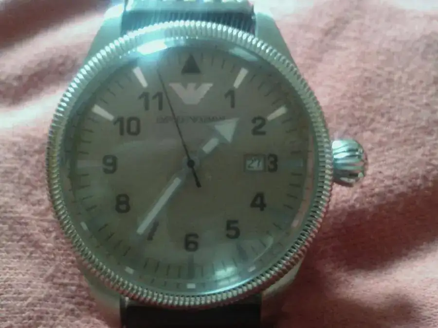 Es un Emporio Armani tipo flieger.Caja de acero tipo monobloque,de 55 mm de corona tipo cebolla incluida,47 mm sin.