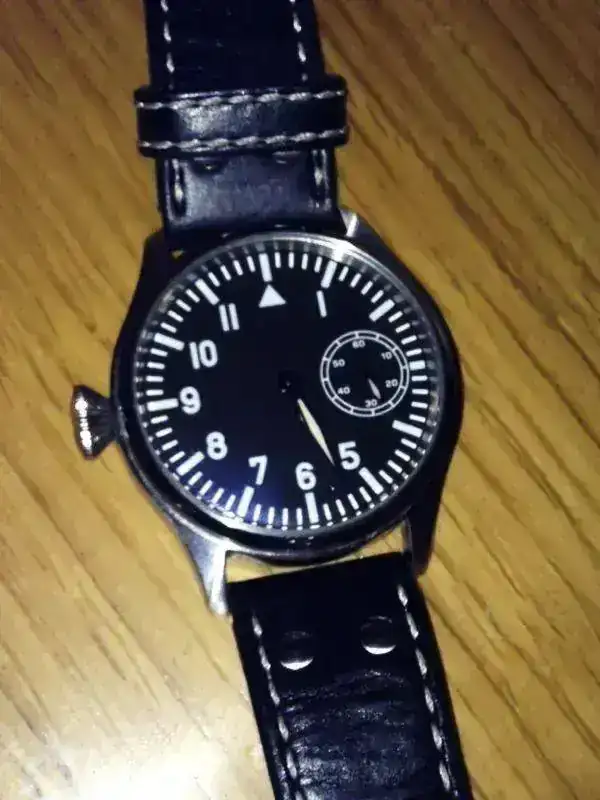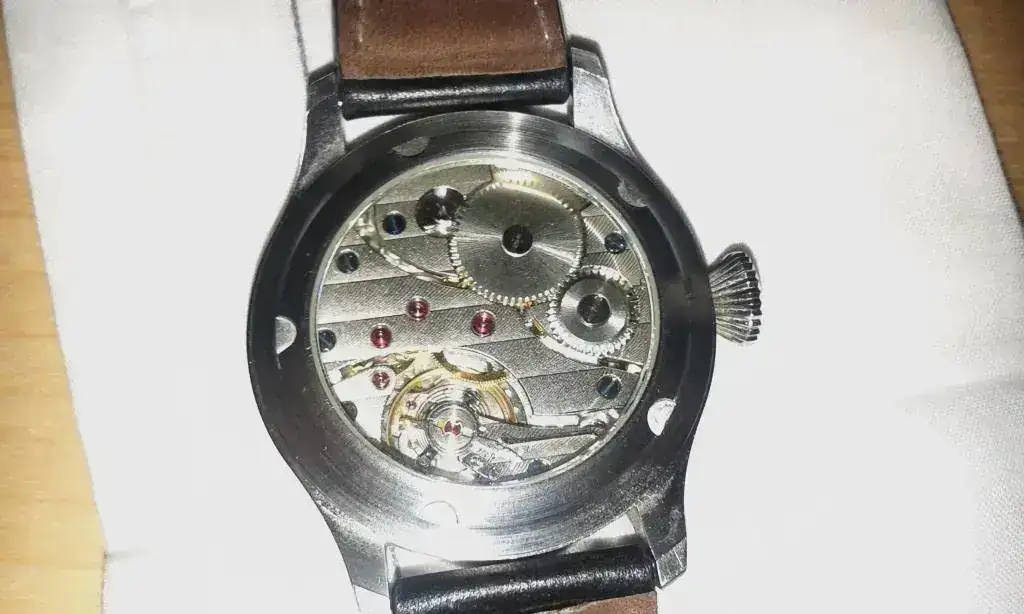 El calibre es un 6497 con la esfera en sentido inverso,de forma que la corona queda a la izquierda del reloj.