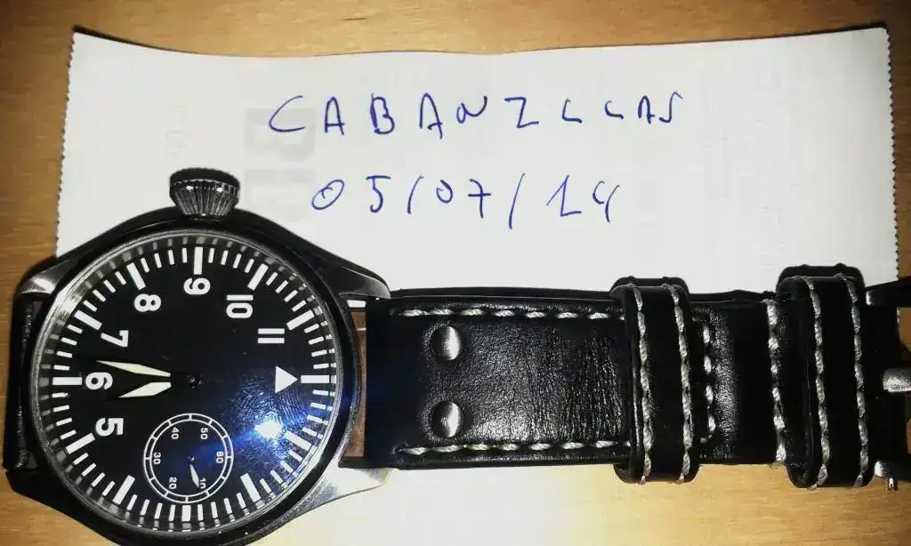 Y te lo mando full equip! Con la correa negra que lleva puesta,con muuuuchísima vida por delante. Con una segunda correa de cuero estilo flieger en tonos grises de Echt Leder..y como extra,una nato tipo bond,negro y verde a juego con la esfera,de estreno total! La nato ella sola ya vale sus 10/15 euros!!!