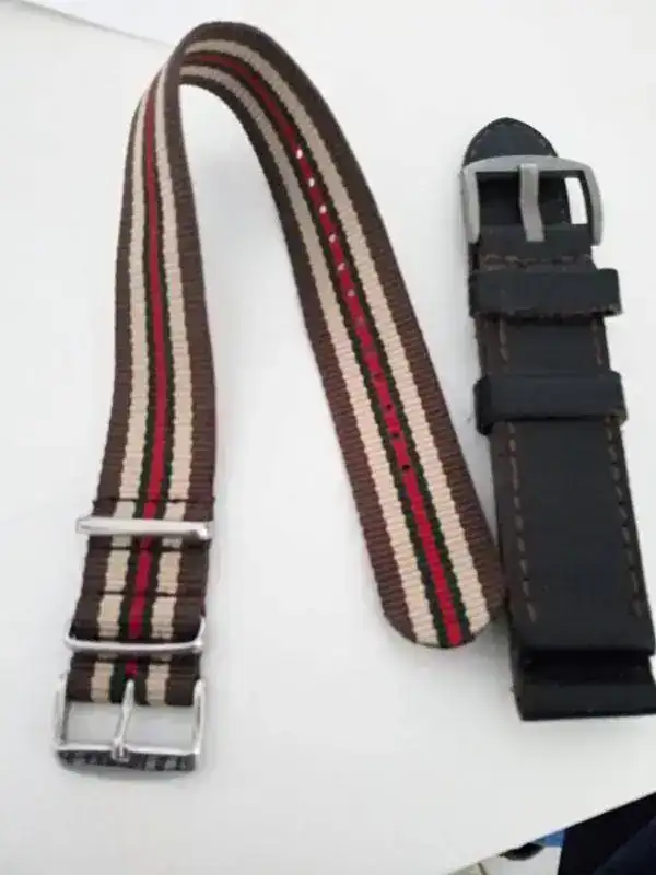 Brazalete: Te lo mando con una correa nueva de reestreno, la suya original de Steinhart con su hebilla de titainio, pero usada. Y de regalo, una nato en tonos marrones para el veranito.