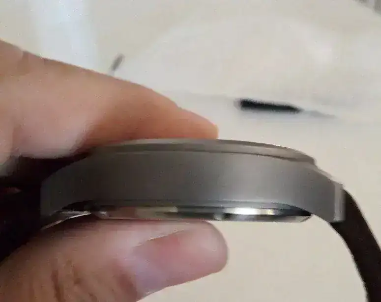 Caja: 44 mm, 22 mm entre asas. Titanio, tapa trasera a rosca, corona tipo diamente a presión. Sólo tiene una marca en un lateral y las inevitables de los cambios de correa en la parte de atrás de las asas